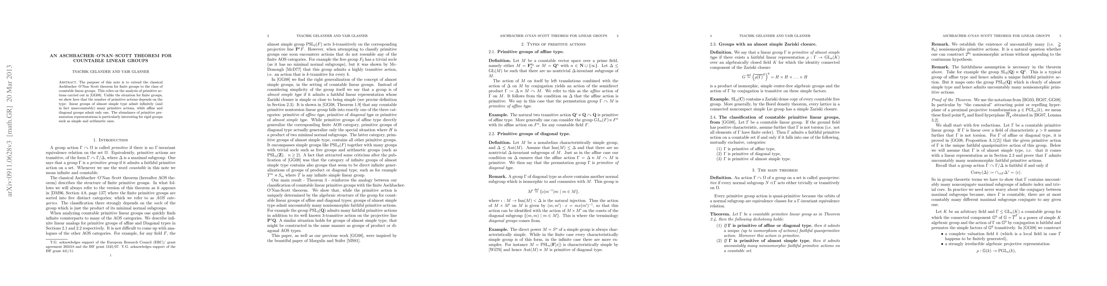The purpose of this note is to extend the classical Aschbacher--O'Nan--Scott theorem for finite groups to the class of countable linear groups. This relies on the analysis of primitive actions carried out in a previous paper. Unlike the situation for finite groups, we show here that the number of primitive actions depends on the type: linear groups of almost simple type admit infinitely (and in fact unaccountably) many primitive actions, while affine and diagonal groups admit only one. The abundance of primitive permutation representations is particularly interesting for rigid groups such as simple and arithmetic ones.