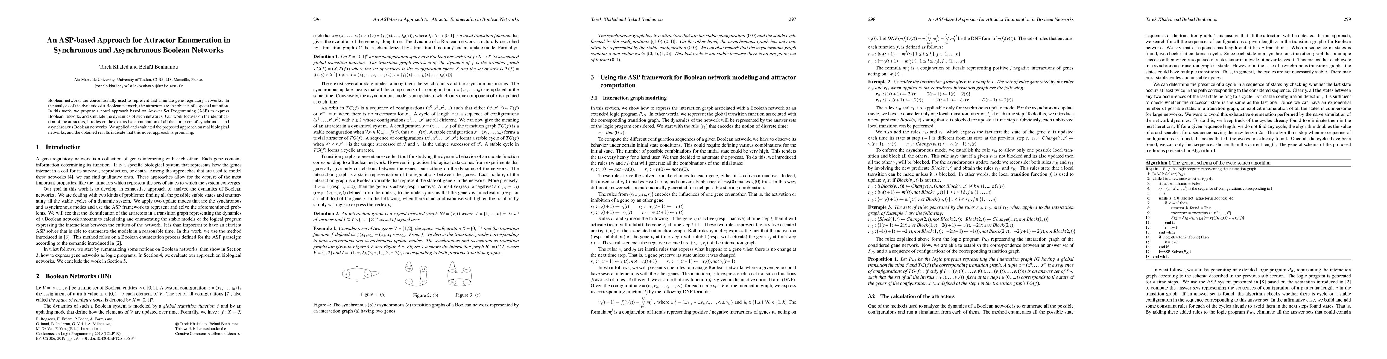 This paper proposes an Answer Set Programming (ASP)-based method for enumerating attractors in Boolean networks, which model gene regulatory dynamics. The approach is evaluated on real biological networks, demonstrating its effectiveness in identifying attractors in both synchronous and asynchronous Boolean networks.