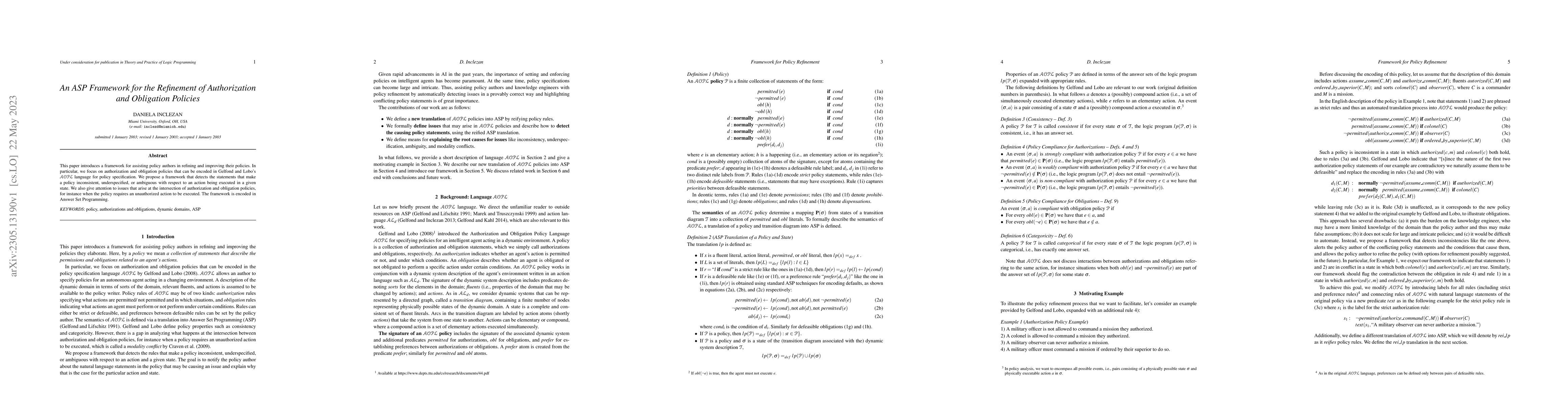 This paper presents an ASP framework to refine authorization and obligation policies specified in AOPL, detecting inconsistencies, underspecifications, and ambiguities. It addresses challenges at the intersection of authorization and obligation, ensuring policy correctness.