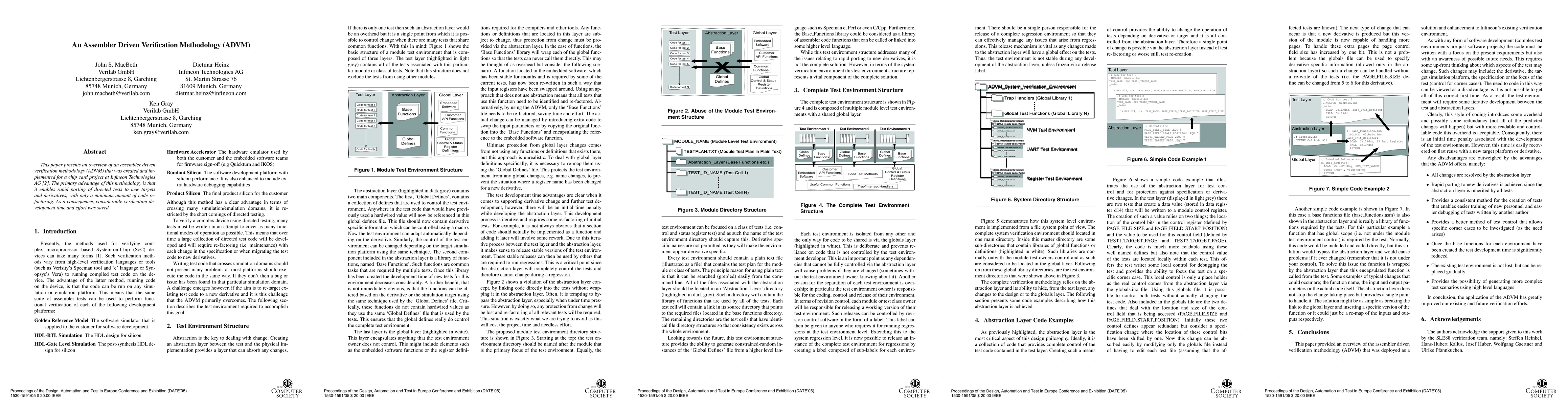 This paper presents an overview of an assembler driven verification methodology (ADVM) that was created and implemented for a chip card project at Infineon Technologies AG. The primary advantage of this methodology is that it enables rapid porting of directed tests to new targets and derivatives, with only a minimum amount of code refactoring. As a consequence, considerable verification development time and effort was saved.