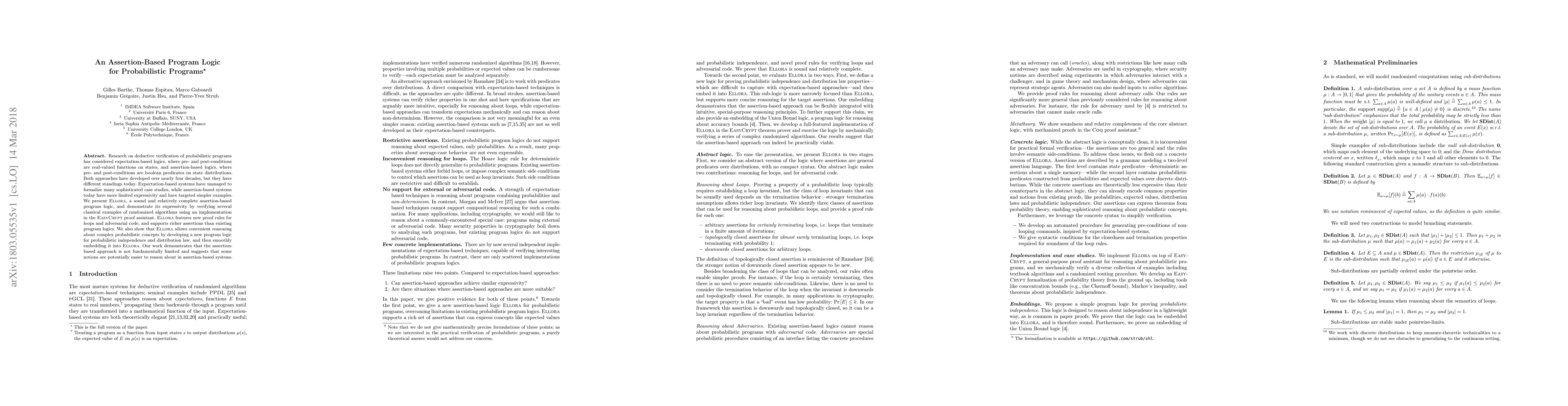 This paper introduces Ellora, a sound and relatively complete assertion-based logic for verifying probabilistic programs, demonstrating its expressivity through verification of classical randomized algorithms. It also shows that assertion-based logics can effectively reason about complex probabilistic concepts like independence and distribution laws.