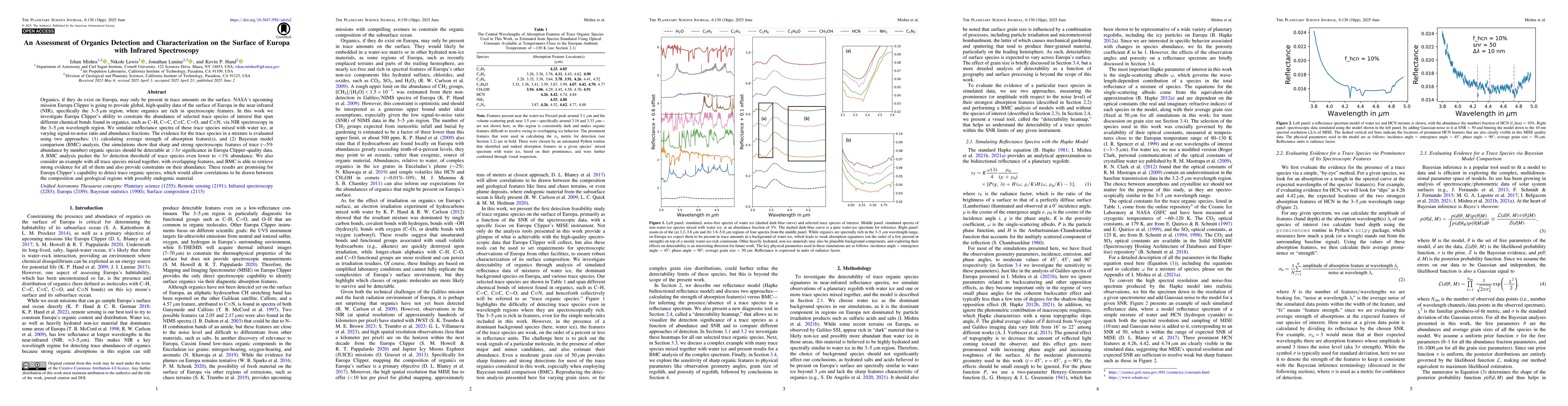 Development and application of a robust methodology combining absorption feature analysis and Bayesian model comparison for detecting trace organics in mixed spectra using NIR spectroscopy.