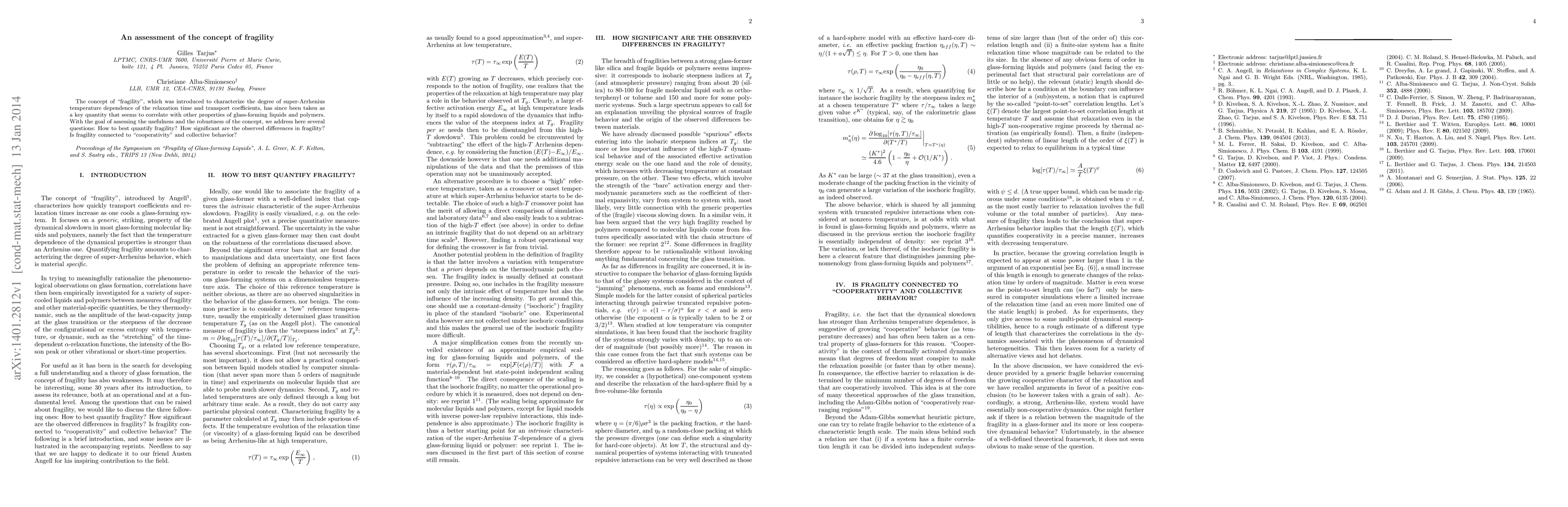 This paper evaluates the concept of "fragility" in glass-forming liquids and polymers, assessing its quantification, significance of observed differences, and its connection to cooperativity and collective behavior. It aims to determine the robustness and utility of the fragility concept.