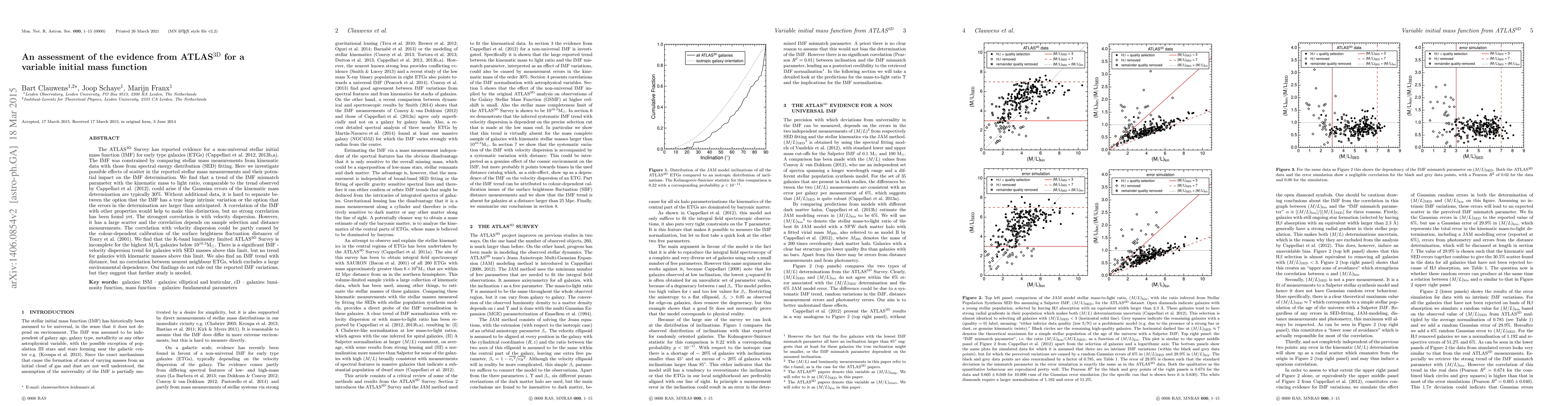 The ATLAS3D Survey has reported evidence for a non-universal stellar initial mass function (IMF) for early type galaxies (ETGs) (Cappellari et al. 2012, 2013b,a). The IMF was constrained by comparing stellar mass measurements from kinematic data with those from spectral energy distribution (SED) fitting. Here we investigate possible effects of scatter in the reported stellar mass measurements and their potential impact on the IMF determination. We find that a trend of the IMF mismatch parameter with the kinematic mass to light ratio, comparable to the trend observed by Cappellari et al. (2012), could arise if the Gaussian errors of the kinematic mass determination are typically 30%. Without additional data, it is hard to separate between the option that the IMF has a true large intrinsic variation or the option that the errors in the determination are larger than anticipated. A correlation of the IMF with other properties would help to make this distinction, but no strong correlation has been found yet. The strongest correlation is with velocity dispersion. However, it has a large scatter and the correlation depends on sample selection and distance measurements. The correlation with velocity dispersion could be partly caused by the colour-dependent calibration of the surface brightness fluctuation distances of Tonry et al. (2001). We find that the K-band luminosity limited ATLAS3D Survey is incomplete for the highest M/L galaxies below 10^10.3 M_sun. There is a significant IMF - velocity dispersion trend for galaxies with SED masses above this limit, but no trend for galaxies with kinematic masses above this limit. We also find an IMF trend with distance, but no correlation between nearest neighbour ETGs, which excludes a large environmental dependence. Our findings do not rule out the reported IMF variations, but they suggest that further study is needed.
