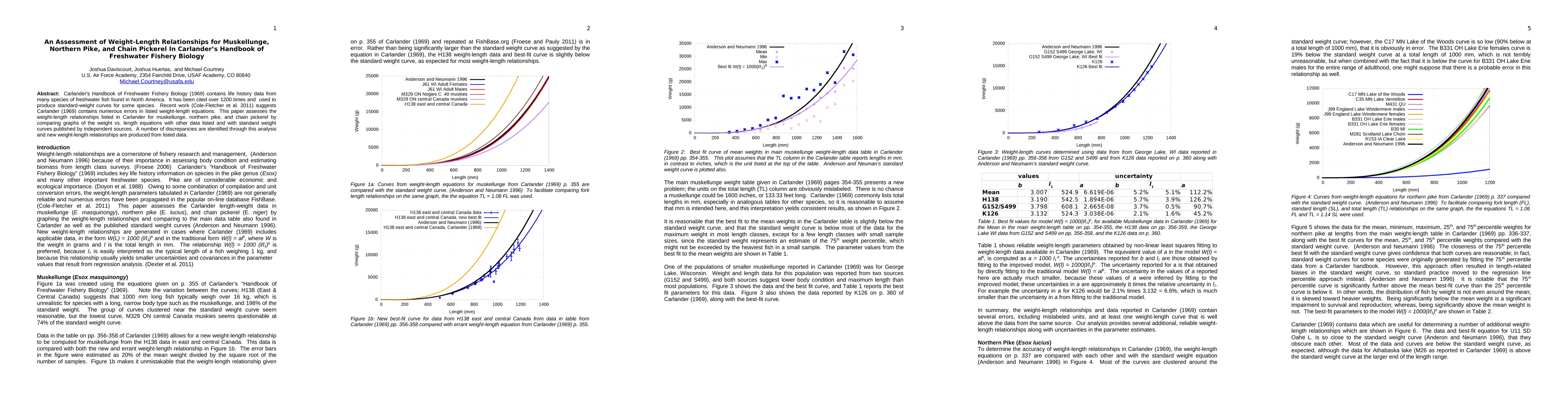 Carlander's Handbook of Freshwater Fishery Biology (1969) contains life history data from many species of freshwater fish found in North America. It has been cited over 1200 times and used to produce standard-weight curves for some species. Recent work (Cole-Fletcher et al. 2011) suggests Carlander (1969) contains numerous errors in listed weight-length equations. This paper assesses the weight-length relationships listed in Carlander for muskellunge, northern pike, and chain pickerel by comparing graphs of the weight vs. length equations with other data listed and with standard weight curves published by independent sources. A number of discrepancies are identified through this analysis and new weight-length relationships are produced from listed data.