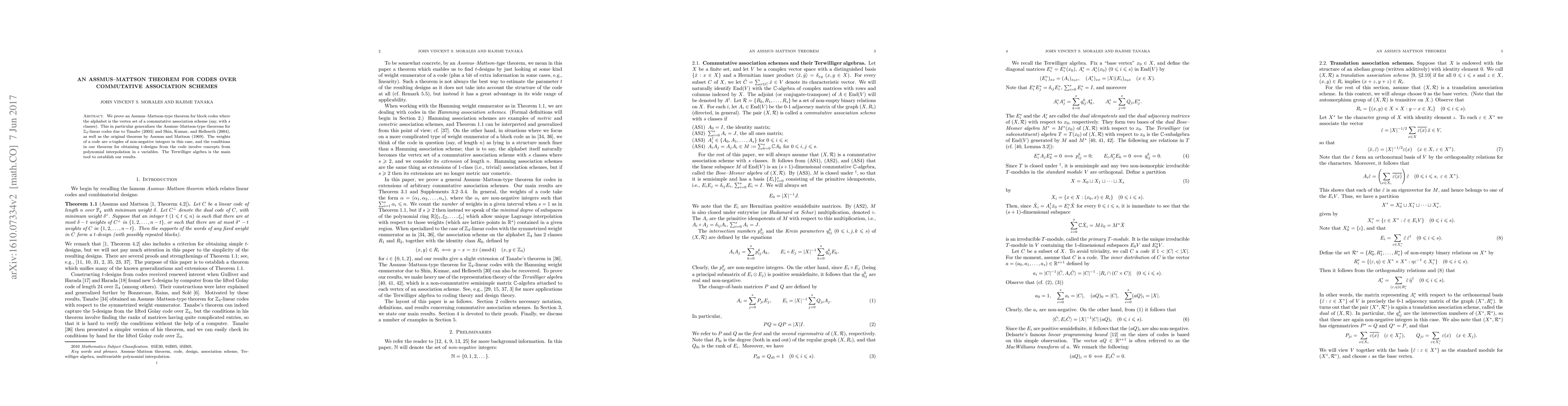 We prove an Assmus-Mattson-type theorem for block codes where the alphabet is the vertex set of a commutative association scheme (say, with $s$ classes). This in particular generalizes the Assmus-Mattson-type theorems for $\mathbb{Z}_4$-linear codes due to Tanabe (2003) and Shin, Kumar, and Helleseth (2004), as well as the original theorem by Assmus and Mattson (1969). The weights of a code are $s$-tuples of non-negative integers in this case, and the conditions in our theorem for obtaining $t$-designs from the code involve concepts from polynomial interpolation in $s$ variables. The Terwilliger algebra is the main tool to establish our results.