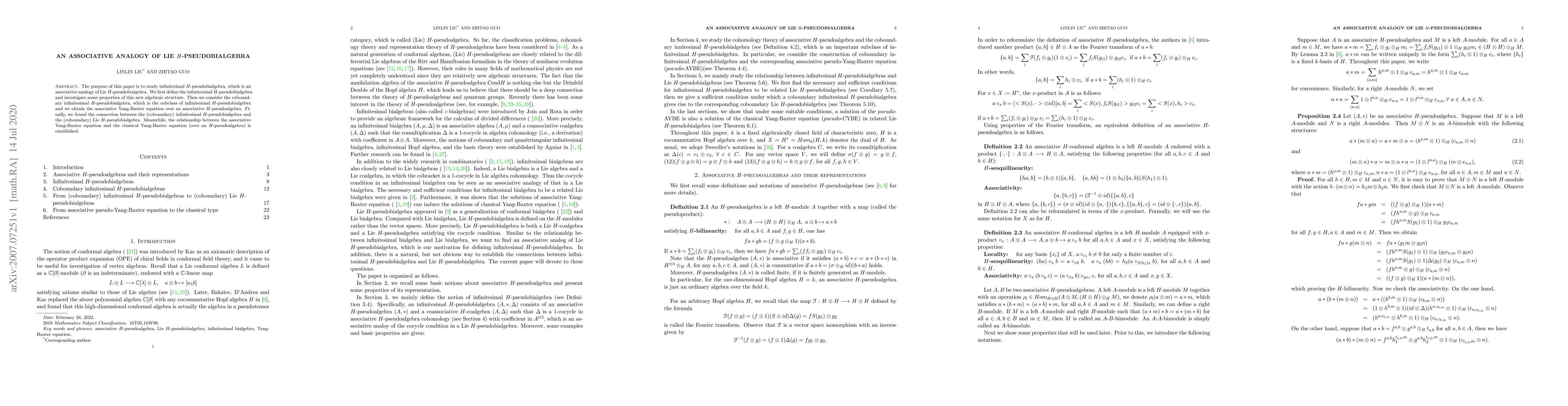 The purpose of this paper is to study infinitesimal H-pseudobialgebra, which is an associative analogy of Lie H-pseudobialgebra. We first define the infinitesimal H-pseudobialgebra and investigate some properties of this new algebraic structure. Then we consider the coboundary infinitesimal H-pseudobialgebra, which is the subclass of infinitesimal H-pseudobialgebra and we obtain the associative Yang-Baxter equation over an associative H-pseudoalgebra. Finally, we found the connection between the (coboundary) infinitesimal H-pseudobialgebra and the (coboundary) Lie H-pseudobialgebra. Meanwhile, the relationship between the associative Yang-Baxter equation and the classical Yang-Baxter equation (over an H-pseudoalgebra) is established.