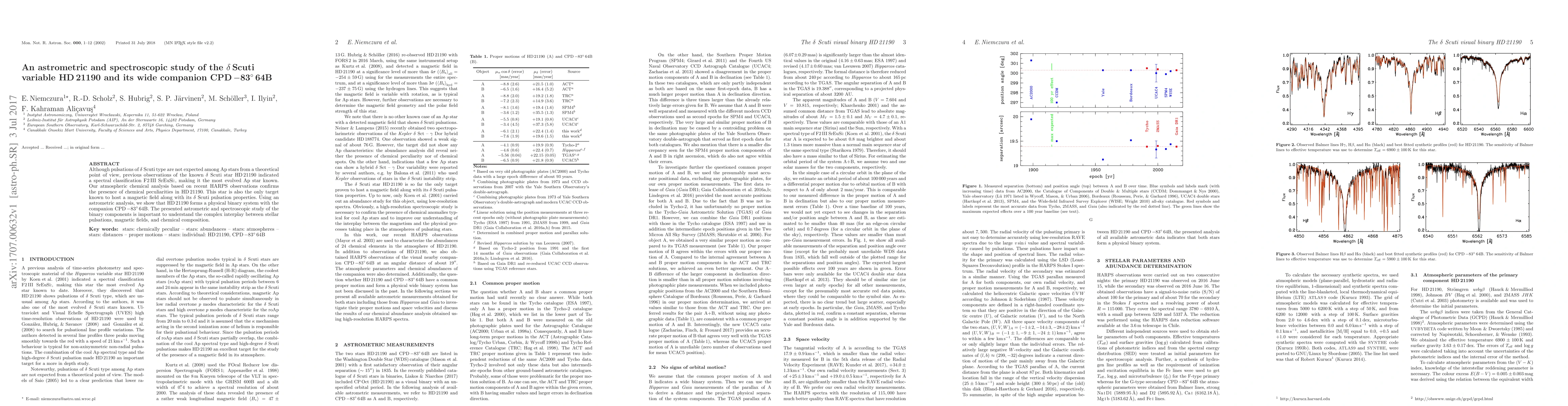 Although pulsations of $\delta$ Scuti type are not expected among Ap stars from a theoretical point of view, previous observations of the known $\delta$ Scuti star HD21190 indicated a spectral classification F2 III SrEuSi:, making it the most evolved Ap star known. Our atmospheric chemical analysis based on recent HARPS observations confirms the presence of chemical peculiarities in HD21190. This star is also the only target known to host a magnetic field along with its $\delta$ Scuti pulsation properties. Using an astrometric analysis, we show that HD21190 forms a physical binary system with the companion CPD -83$^{\circ}$ 64B. The presented astrometric and spectroscopic study of the binary components is important to understand the complex interplay between stellar pulsations, magnetic fields, and chemical composition.