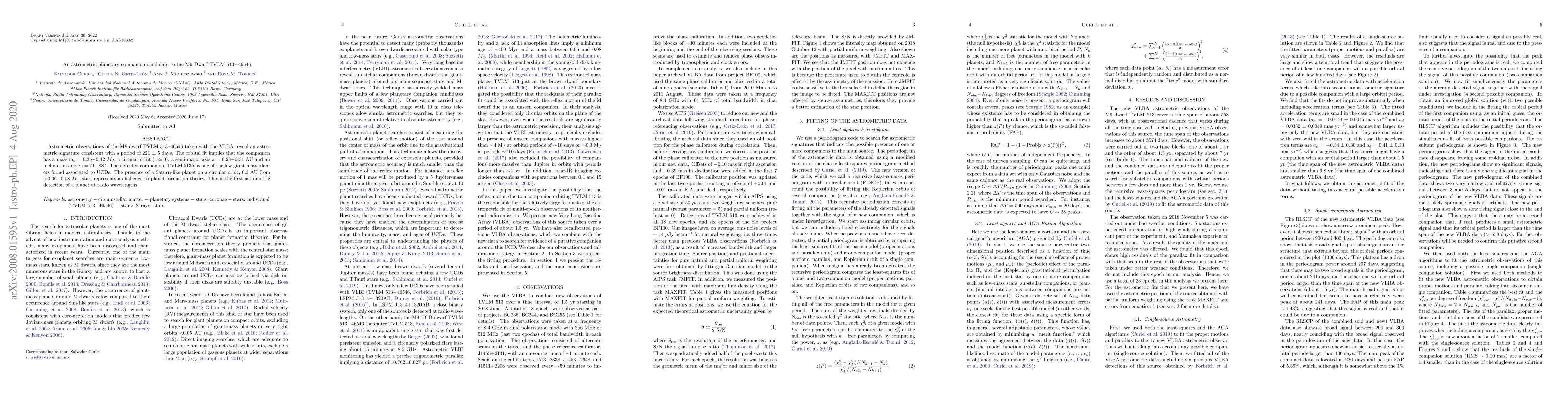 This paper reports the discovery of a Saturn-like planet, TVLM 513b, orbiting the M9 dwarf TVLM 513-46546, detected via astrometric observations using the VLBA. The planet has a mass of 0.35–0.42 MJ, orbits at 0.28–0.31 AU, and presents a challenge to current planet formation theories.