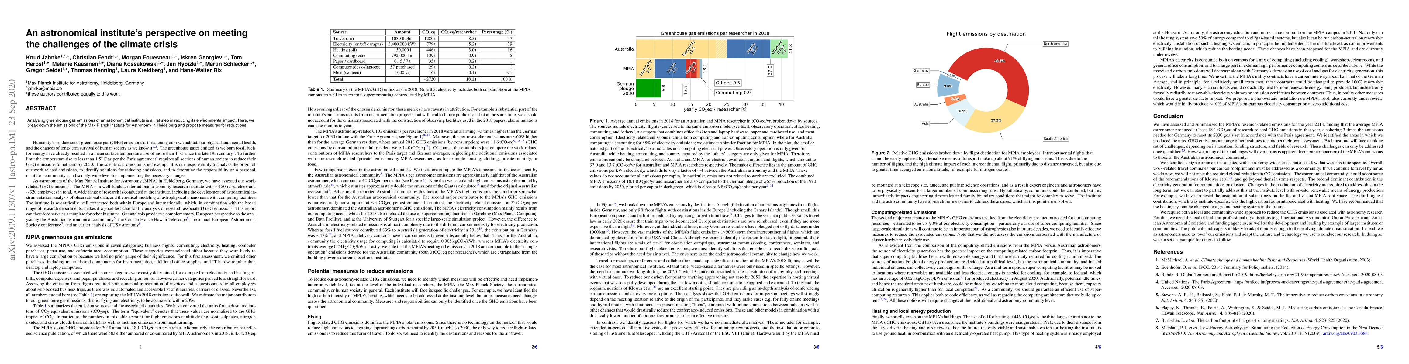 Analysing greenhouse gas emissions of an astronomical institute is a first step in reducing its environmental impact. Here, we break down the emissions of the Max Planck Institute for Astronomy in Heidelberg and propose measures for reductions.