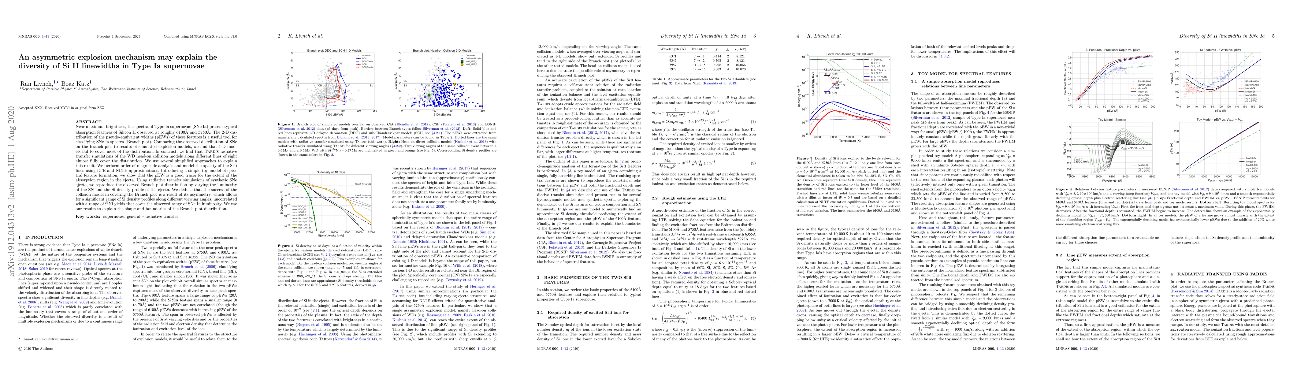 Near maximum brightness, the spectra of Type Ia supernovae (SNe Ia) present typical absorption features of Silicon II observed at roughly 6100A and 5750A. The 2-D distribution of the pseudo-equivalent widths (pEWs) of these features is a useful tool for classifying SNe Ia spectra (Branch plot). Comparing the observed distribution of SNe on the Branch plot to results of simulated explosion models, we find that 1-D models fail to cover most of the distribution. In contrast, we find that TARDIS radiative transfer simulations of the WD head-on collision models along different lines of sight almost fully cover the distribution. We use several simplified approaches to explain this result. We perform order-of-magnitude analysis and model the opacity of the Si lines using LTE and NLTE approximations. Introducing a simple toy model of spectral feature formation, we show that the pEW is a good tracer for the extent of the absorption region in the ejecta. Using radiative transfer simulations of synthetic SNe ejecta, we reproduce the observed Branch plot distribution by varying the luminosity of the SN and the Si density profile of the ejecta. We deduce that the success of the collision model in covering the Branch plot is a result of its asymmetry, which allows for a significant range of Si density profiles along different viewing angles, uncorrelated with a range of $^{56}$Ni yields that cover the observed range of SNe Ia luminosity. We use our results to explain the shape and boundaries of the Branch plot distribution.