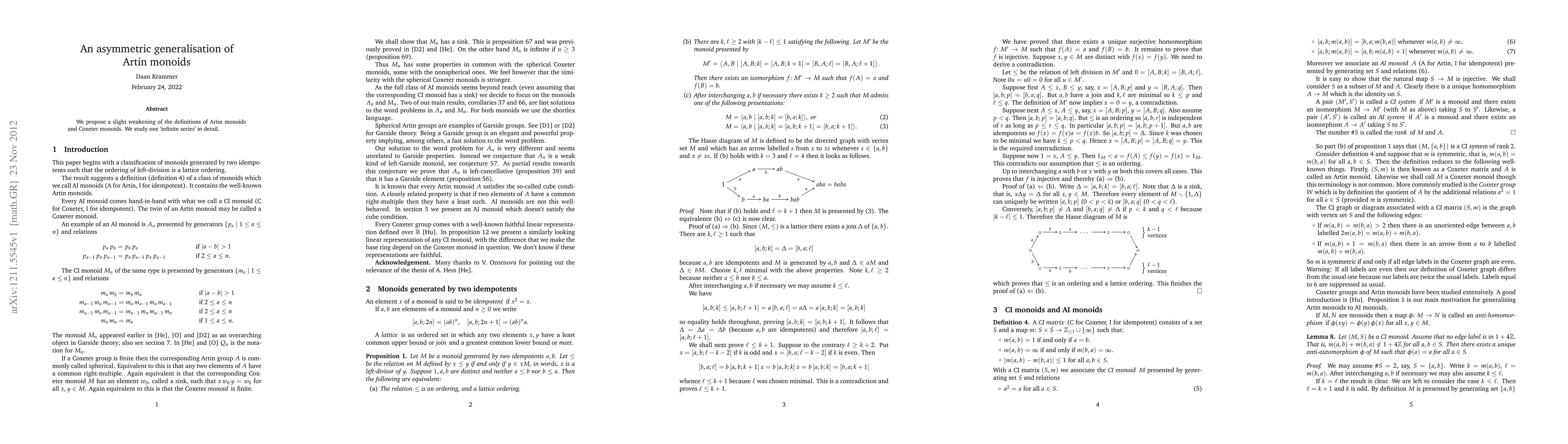 Summary: This paper proposes a relaxed version of Artin and Coxeter monoids and conducts an in-depth study of one infinite series within this new framework.