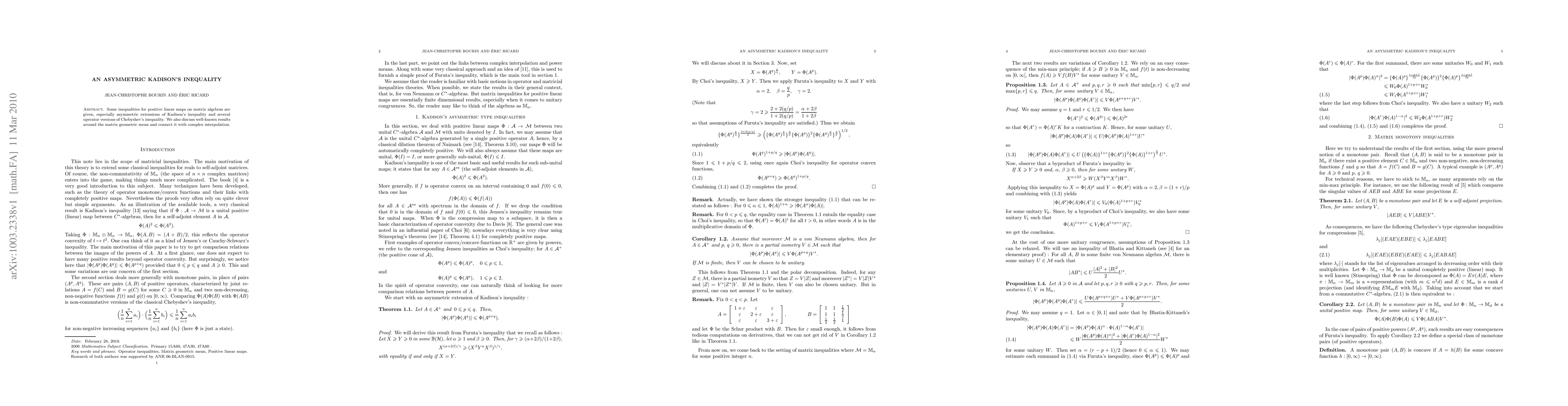 This paper extends Kadison's inequality to asymmetric cases and connects it with the matrix geometric mean, exploring applications in operator theory.