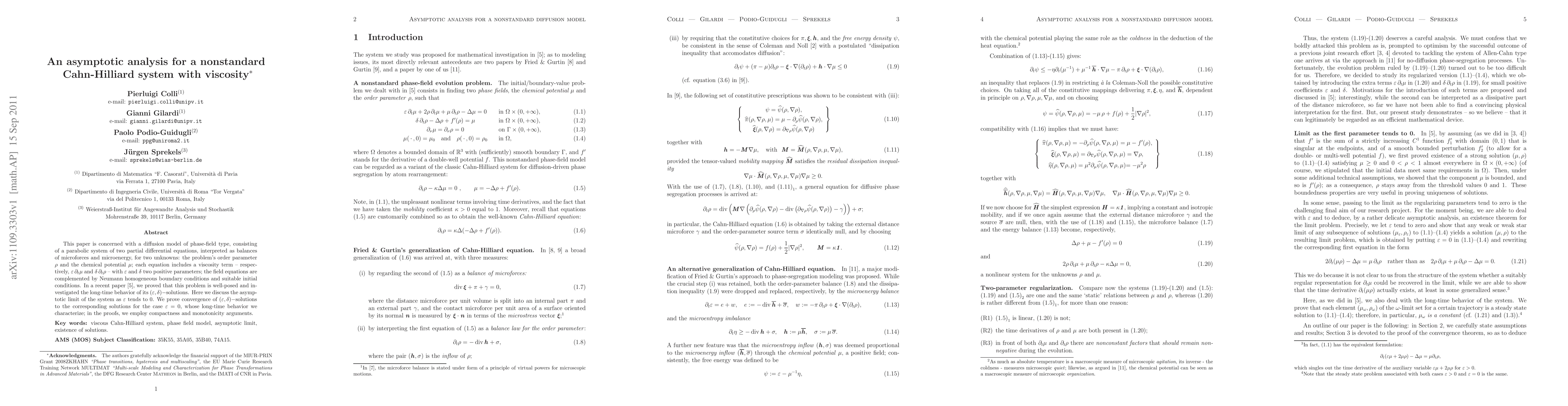 This paper is concerned with a diffusion model of phase-field type, consisting of a parabolic system of two partial differential equations, interpreted as balances of microforces and microenergy, for two unknowns: the problem's order parameter and the chemical potential; each equation includes a viscosity term and the field equations are complemented by Neumann homogeneous boundary conditions and suitable initial conditions. In the recent paper arXiv:1103.4585v1 [math.AP] we proved that this problem is well posed and investigated the long-time behavior of its solutions. Here we discuss the asymptotic limit of the system as the viscosity coefficient of the order parameter equation tends to 0. We prove convergence of solutions to the corresponding solutions for the limit problem, whose long-time behavior we characterize; in the proofs, we employ compactness and monotonicity arguments.