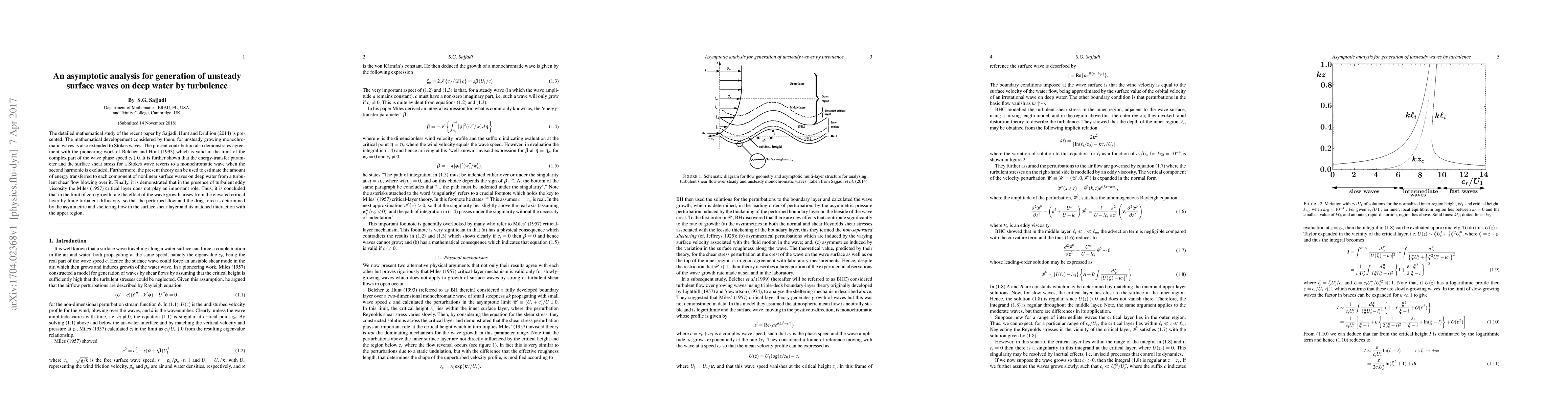Research confirms that turbulence can generate unsteady surface waves on deep water, with energy transfer to each component of nonlinear surface waves; the study also finds that turbulent eddy viscosity affects wave growth.