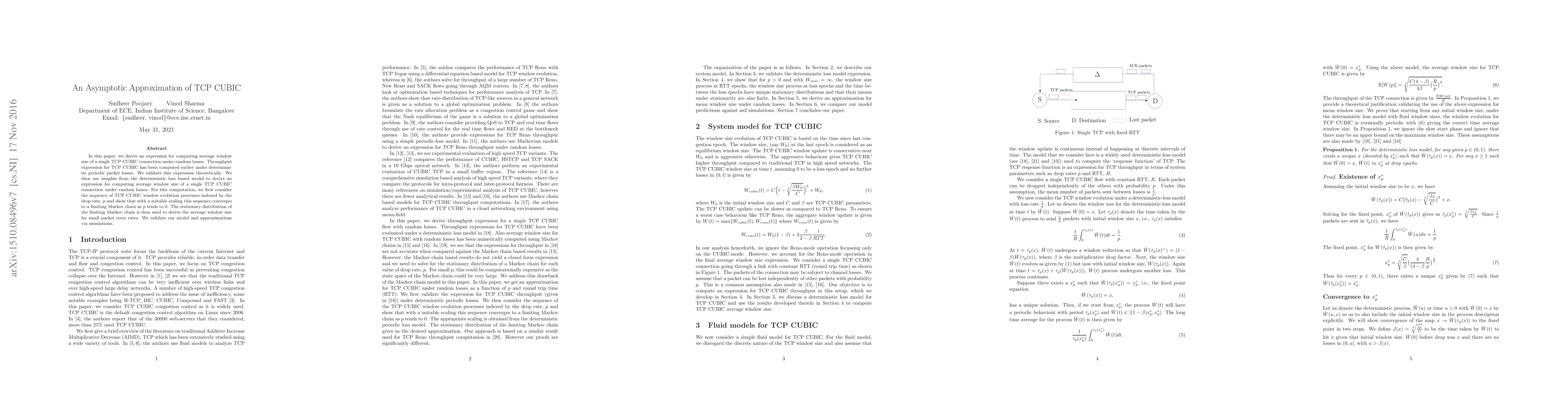 This paper derives an asymptotic expression for the average window size of TCP CUBIC under random packet losses, extending previous models that considered deterministic losses. The authors validate their model through theoretical analysis and simulations, showing convergence to a limiting Markov chain as loss rates approach zero.
