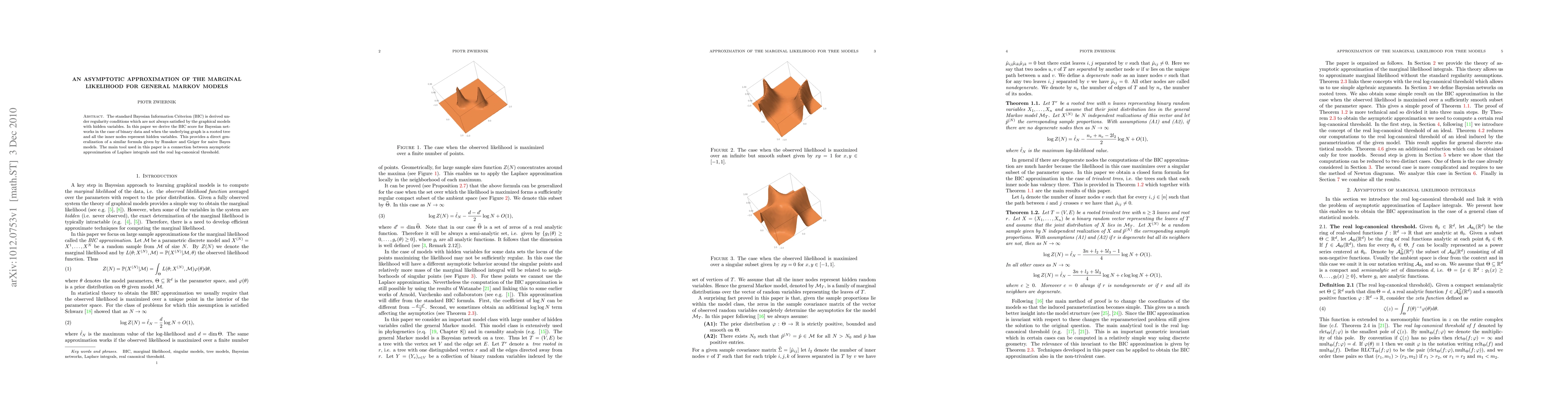 This paper generalizes the Bayesian Information Criterion (BIC) for Bayesian networks with hidden variables, specifically for binary data and rooted tree structures. It employs an asymptotic approximation of Laplace integrals linked to the real log-canonical threshold to achieve this generalization.