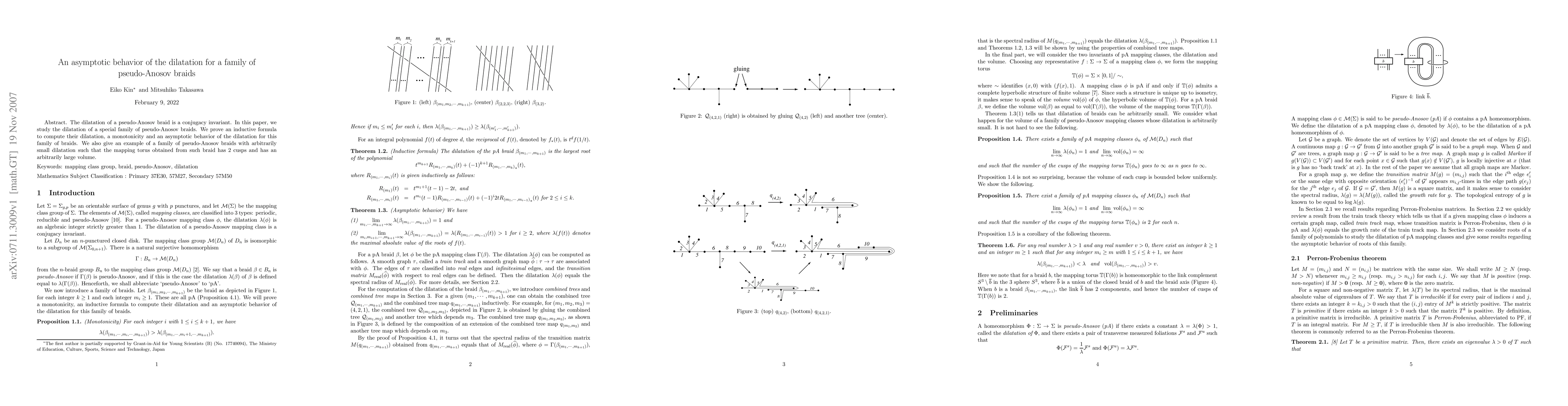 This paper investigates the asymptotic behavior of the dilatation of a specific family of pseudo-Anosov braids, proving an inductive formula for their computation, demonstrating monotonicity, and showing an example of such braids with small dilatation but large volume mapping torus.
