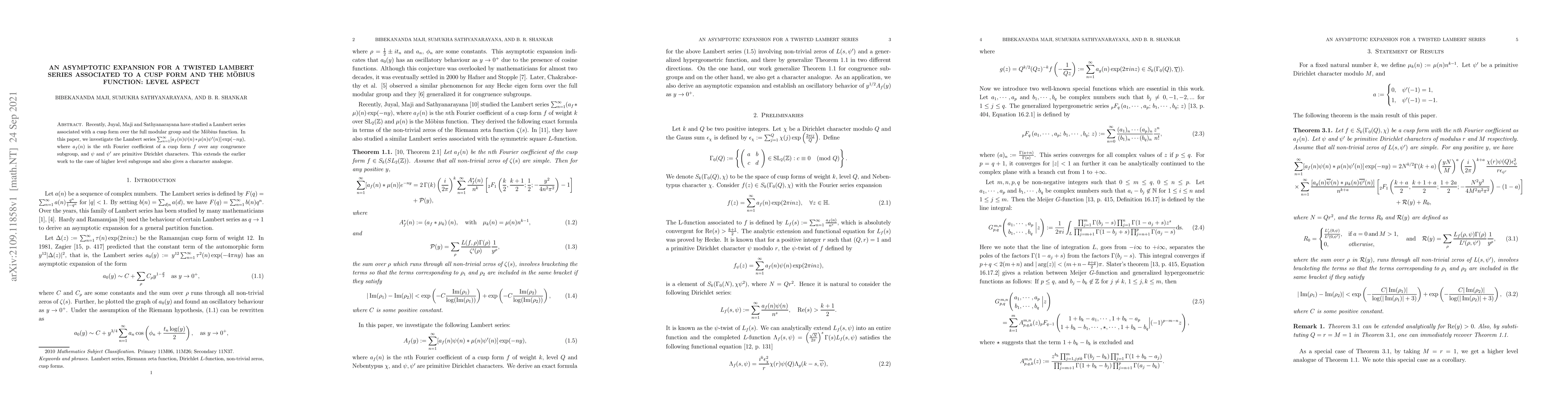 This paper extends the study of a twisted Lambert series associated with cusp forms and the M\"obius function to higher level subgroups, providing an asymptotic expansion for the series $\sum_{n=1}^{\infty}[a_f(n)\psi(n)\mu(n)\psi'(n)]\exp(-ny)$, where $a_f(n)$ are Fourier coefficients and $\psi, \psi'$ are Dirichlet characters.