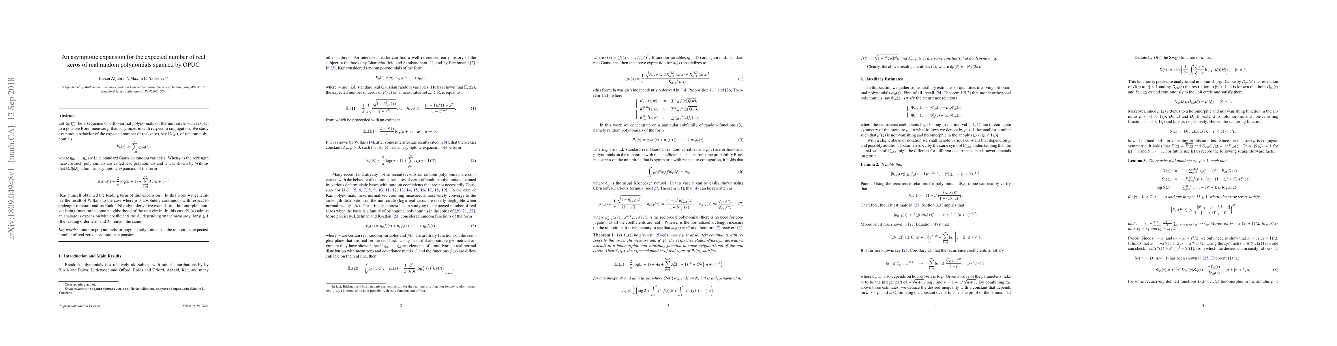 This paper generalizes Wilkins' result on the asymptotic expansion of the expected number of real zeros for Kac polynomials to a broader class of random polynomials defined by orthonormal polynomials on the unit circle with a symmetric measure. The study reveals that the expected number of real zeros follows an asymptotic expansion similar to the Kac case but with coefficients dependent on the specific measure.