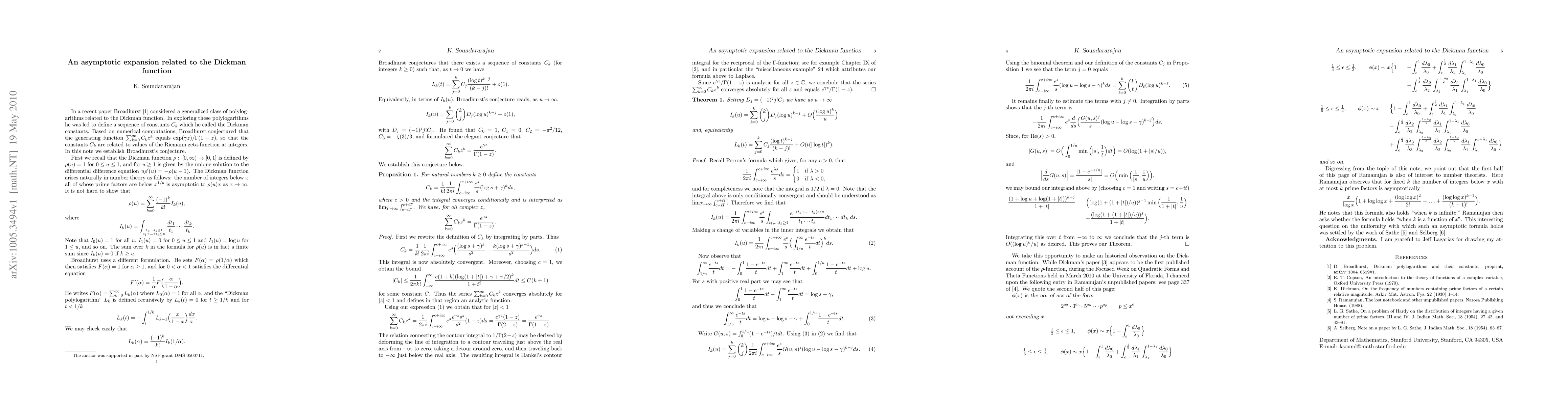 Researchers prove a conjecture on asymptotic expansions of polylogarithm functions related to the Dickman function, shedding light on their behavior for large inputs.