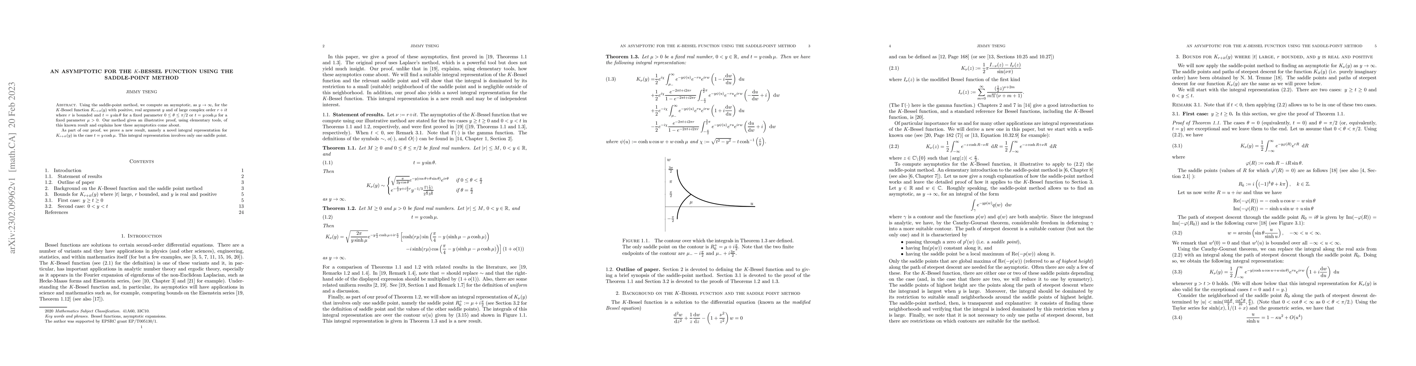 Using the saddle-point method, we compute an asymptotic, as $y \rightarrow \infty$, for the $K$-Bessel function $K_{r + i t}(y)$ with positive, real argument $y$ and of large complex order $r+it$ where $r$ is bounded and $t = y \sin \theta$ for a fixed parameter $0\leq \theta\leq \pi/2$ or $t= y \cosh \mu$ for a fixed parameter $\mu>0$. Our method gives an illustrative proof, using elementary tools, of this known result and explains how these asymptotics come about. As part of our proof, we prove a new result, namely a novel integral representation for $K_{r + i t}(y)$ in the case $t= y \cosh \mu$. This integral representation involves only one saddle point.