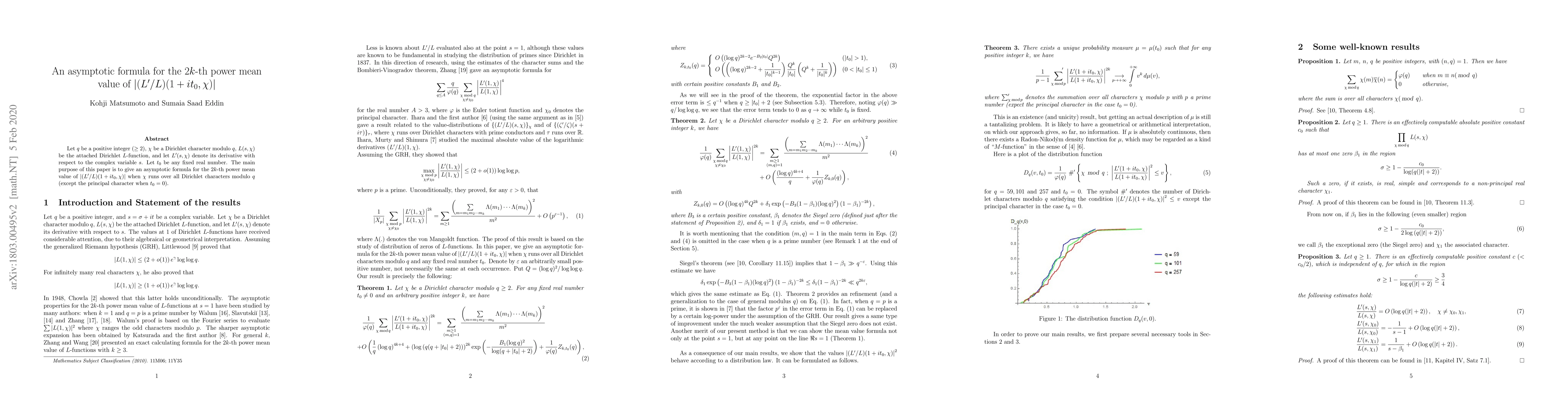 Let $q$ be a positive integer ($\geq 2$), $\chi$ be a Dirichlet character modulo $q$, $L(s, \chi)$ be the attached Dirichlet $L$-function, and let $L^\prime(s, \chi)$ denote its derivative with respect to the complex variable $s$. Let $t_0$ be any fixed real number. The main purpose of this paper is to give an asymptotic formula for the $2k$-th power mean value of $\left|(L^\prime/L)(1+it_0, \chi)\right|$ when $\chi$ runs over all Dirichlet characters modulo $q$ (except the principal character when $t_0=0$).