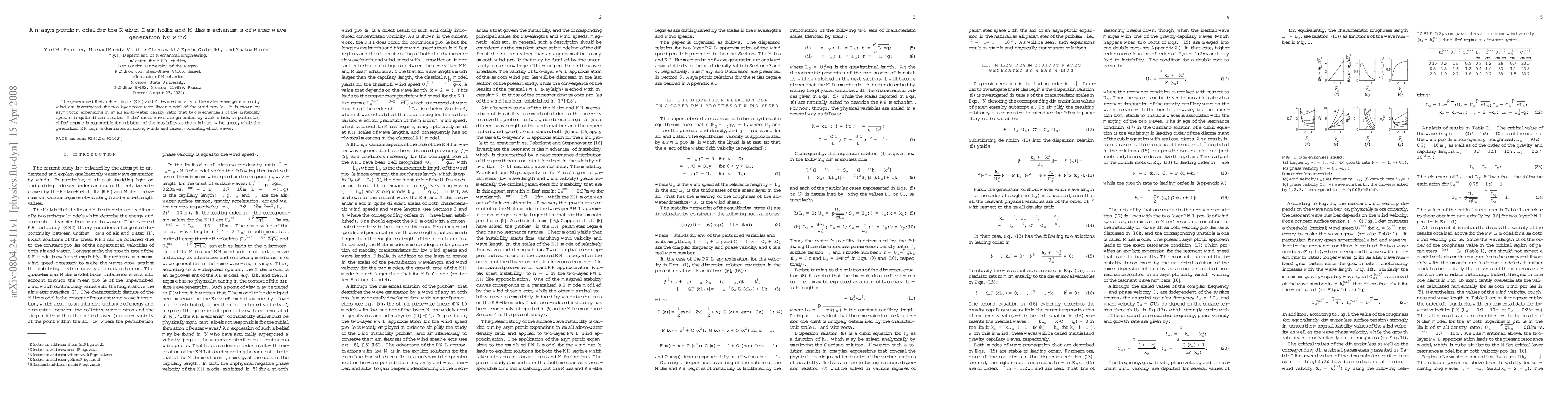 Researchers developed an asymptotic model to study water wave generation by wind, finding that two instability mechanisms operate at different scales: Miles' short waves for weak winds and the generalized Kelvin-Helmholtz regime for strong winds.