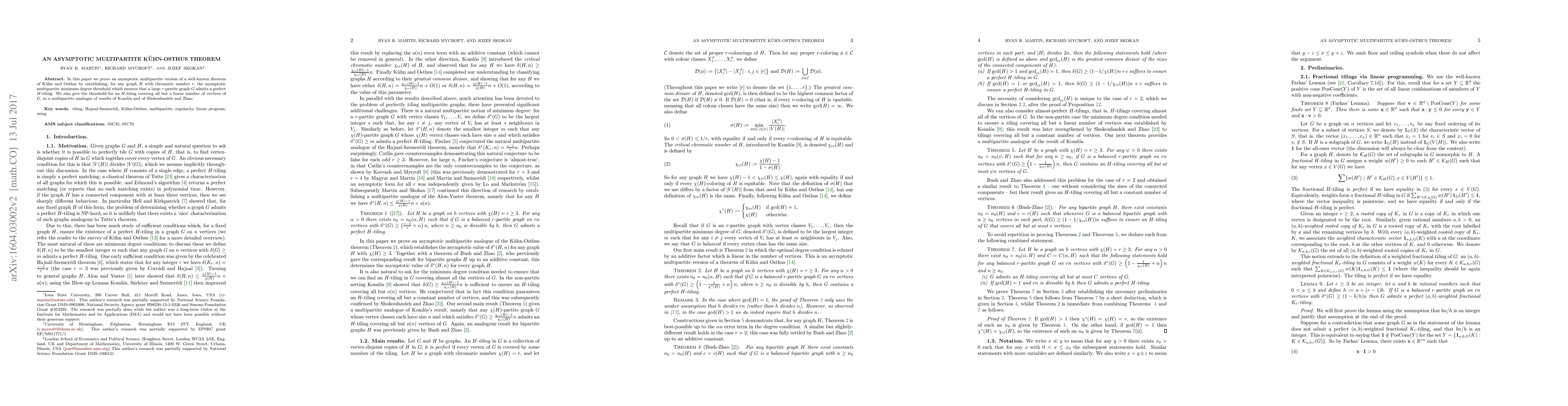 In this paper we prove an asymptotic multipartite version of a well-known theorem of K\"uhn and Osthus by establishing, for any graph $H$ with chromatic number $r$, the asymptotic multipartite minimum degree threshold which ensures that a large $r$-partite graph $G$ admits a perfect $H$-tiling. We also give the threshold for an $H$-tiling covering all but a linear number of vertices of $G$, in a multipartite analogue of results of Koml\'os and of Shokoufandeh and Zhao.