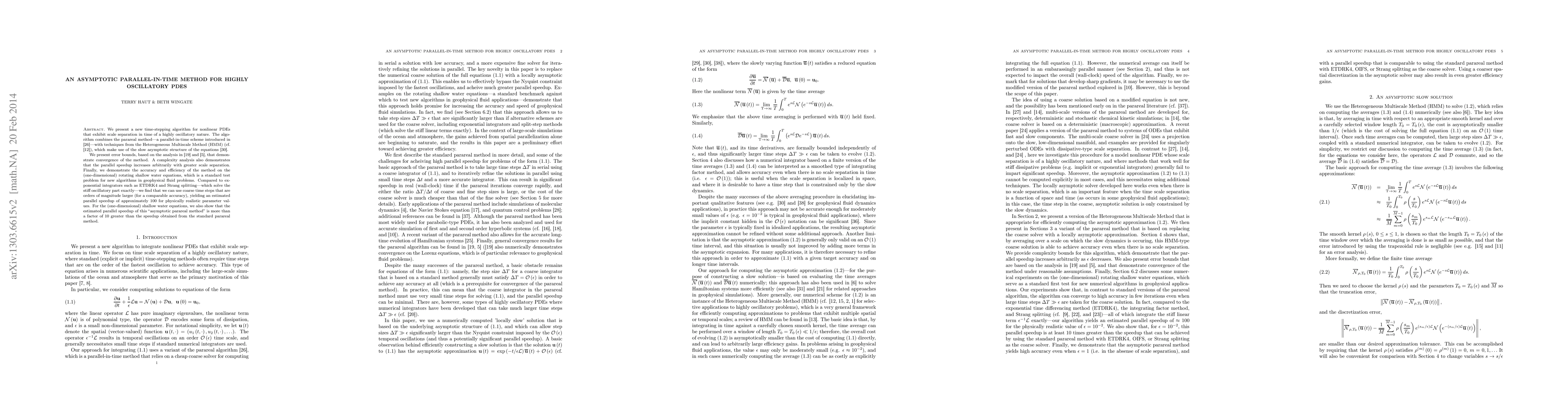 A new algorithm combines low-cost asymptotic techniques with parallel-in-time methods to solve highly oscillatory PDEs with significant speedup and high accuracy for nonlinear equations like the rotating shallow water equations.