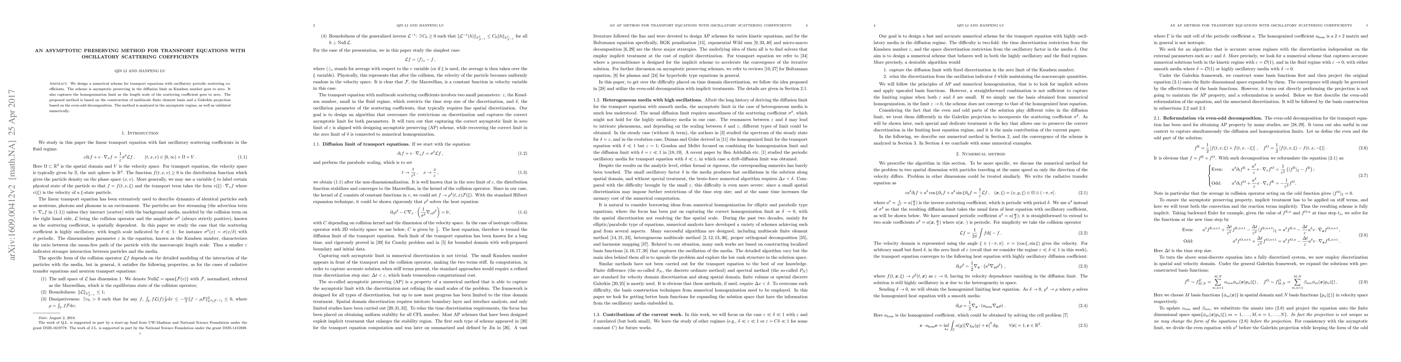 Researchers developed an asymptotic preserving numerical scheme for transport equations with oscillatory scattering coefficients, capturing both diffusion and homogenization limits.
