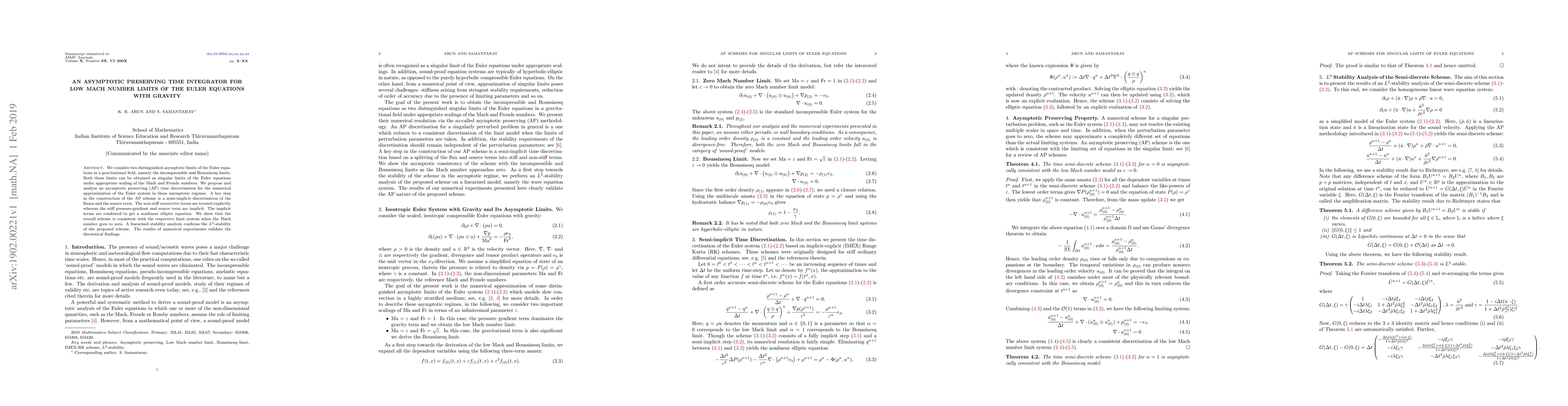 This paper proposes an asymptotic preserving time integrator for the Euler equations under low Mach number limits, specifically the incompressible and Boussinesq regimes. The method employs a semi-implicit scheme to handle the stiff pressure-gradient and source terms implicitly, while treating non-stiff convective terms explicitly, ensuring consistency and stability in the low Mach number limit.