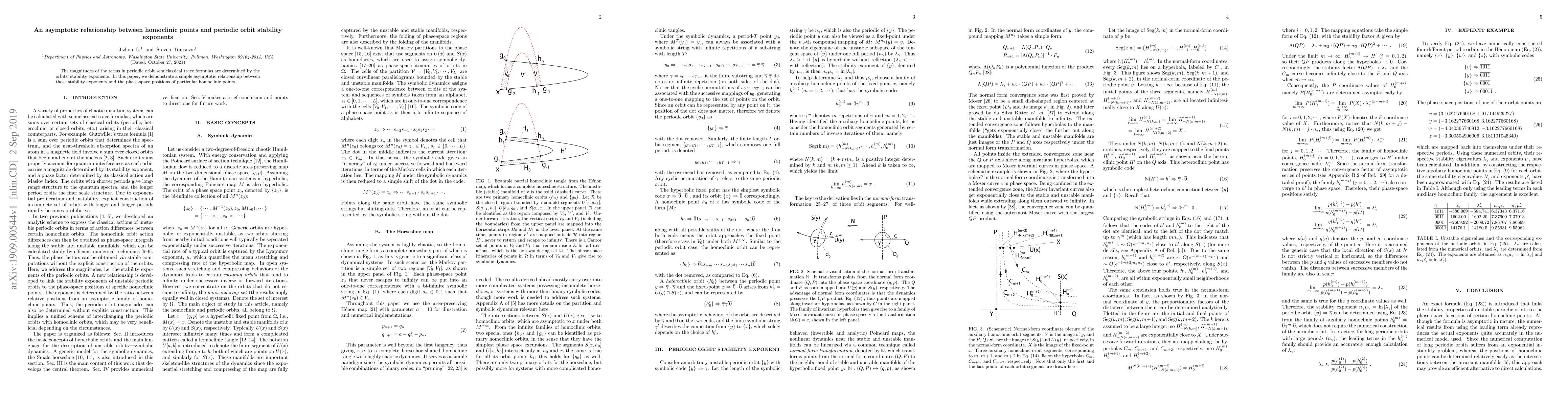 The magnitudes of the terms in periodic orbit semiclassical trace formulas are determined by the orbits' stability exponents. In this paper, we demonstrate a simple asymptotic relationship between those stability exponents and the phase-space positions of particular homoclinic points.