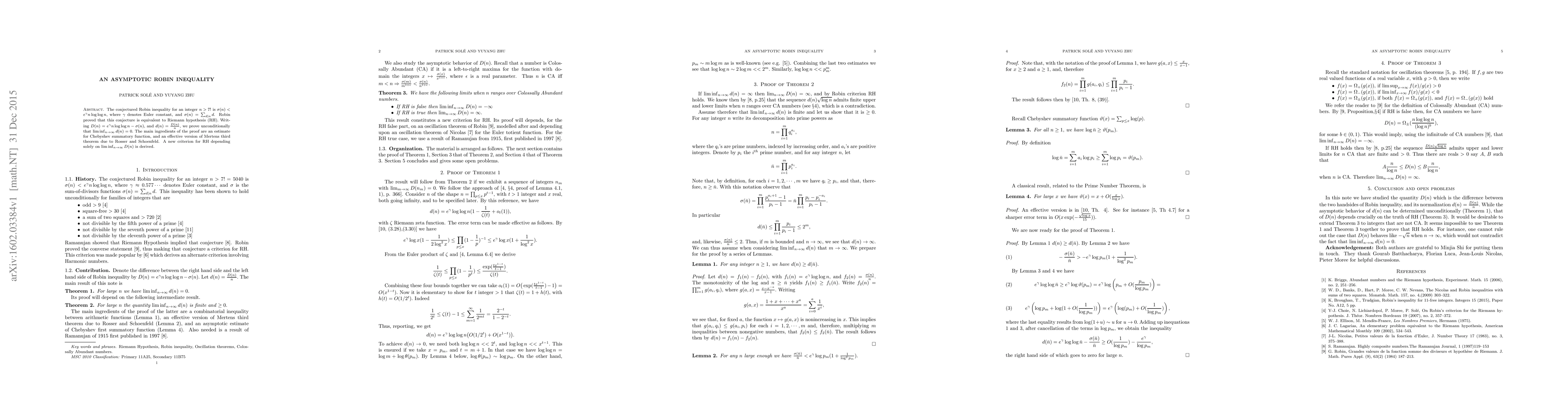 The conjectured Robin inequality for an integer $n>7!$ is $\sigma(n)