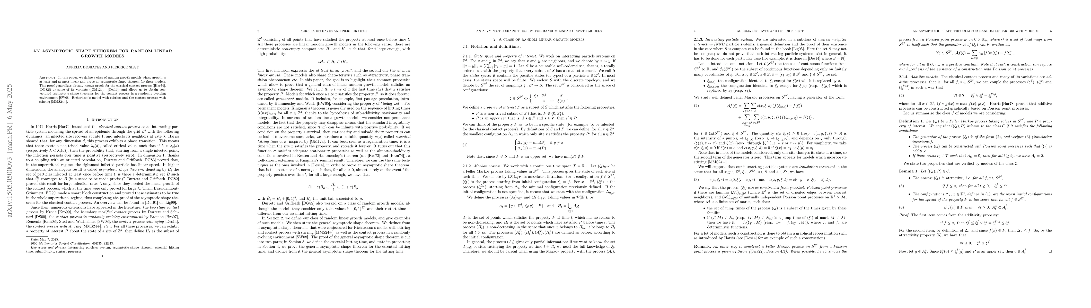 This paper proves an asymptotic shape theorem for a class of random growth models with linear growth, generalizing previous results and applying to several related models, including the contact process and percolation.