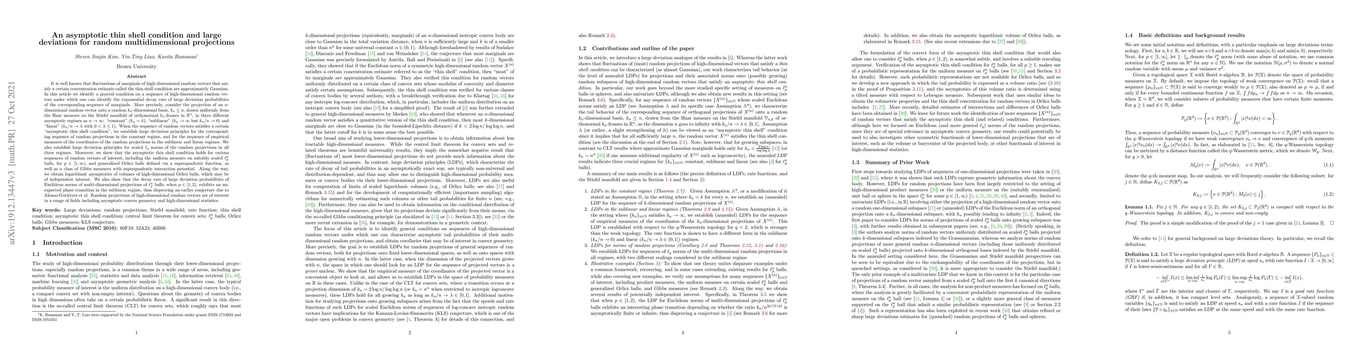 This research paper establishes large deviation principles for random projections of high-dimensional vectors onto random bases, extending existing results and providing new insights into the behavior of such projections.