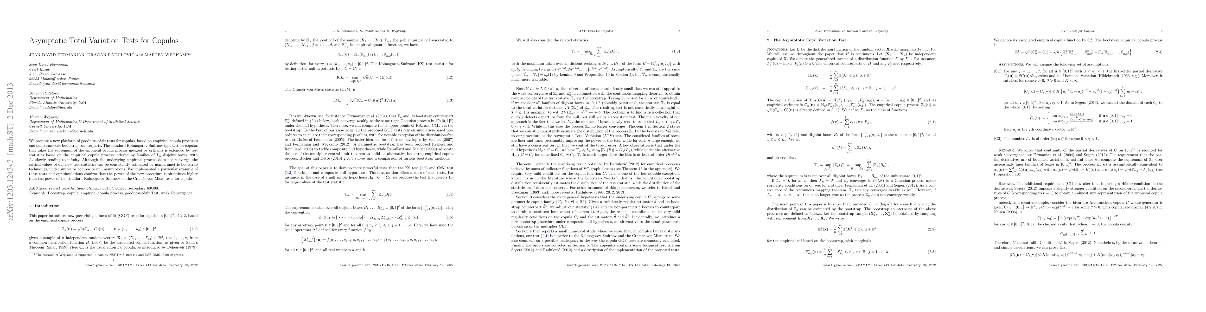This paper introduces a new asymptotic total variation test for copulas, extending the standard Kolmogorov-Smirnov test by incorporating supremum-based statistics from empirical copula processes. The proposed test's p-values are consistently estimated via bootstrap, and simulations show it has higher power compared to the standard test.