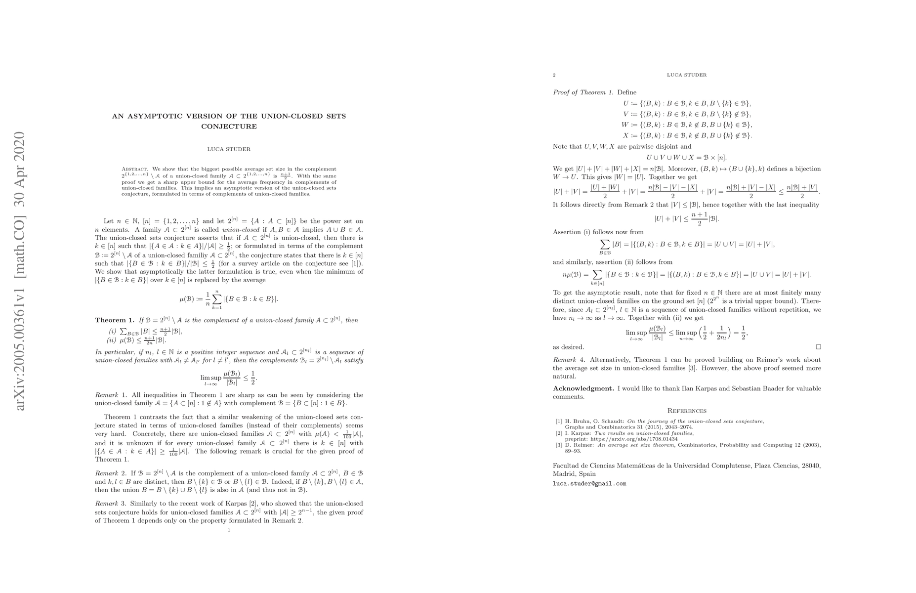 This research establishes that the largest average set size in the complement of a union-closed family is $\tfrac{n+1}{2}$, providing a sharp upper bound for the average frequency in such complements, thereby supporting an asymptotic version of the union-closed sets conjecture.