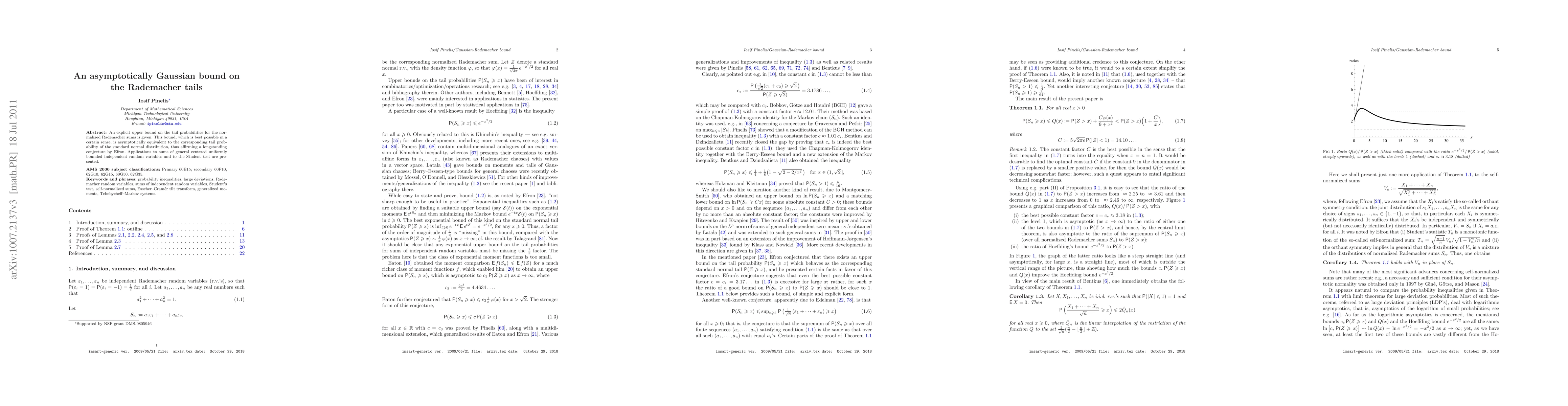 This paper provides an asymptotically Gaussian upper bound on the tail probabilities for normalized Rademacher sums, confirming Efron's conjecture and extending the result to sums of general centered uniformly bounded independent random variables, with applications to the Student test.