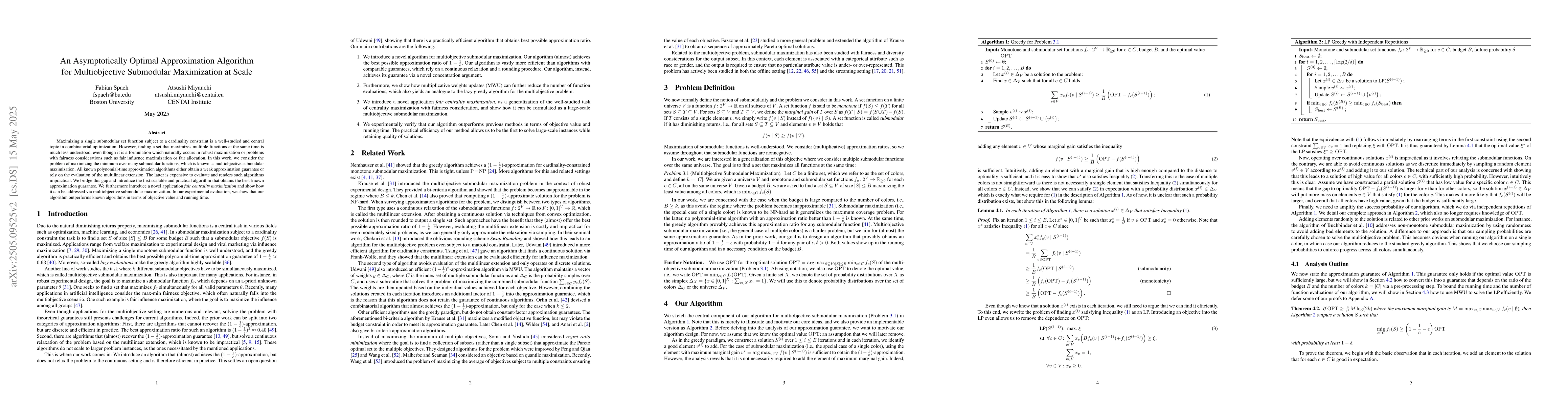 The paper presents an asymptotically optimal approximation algorithm for multiobjective submodular maximization at scale, utilizing a novel approach that avoids the computationally expensive evaluation of the multilinear extension.