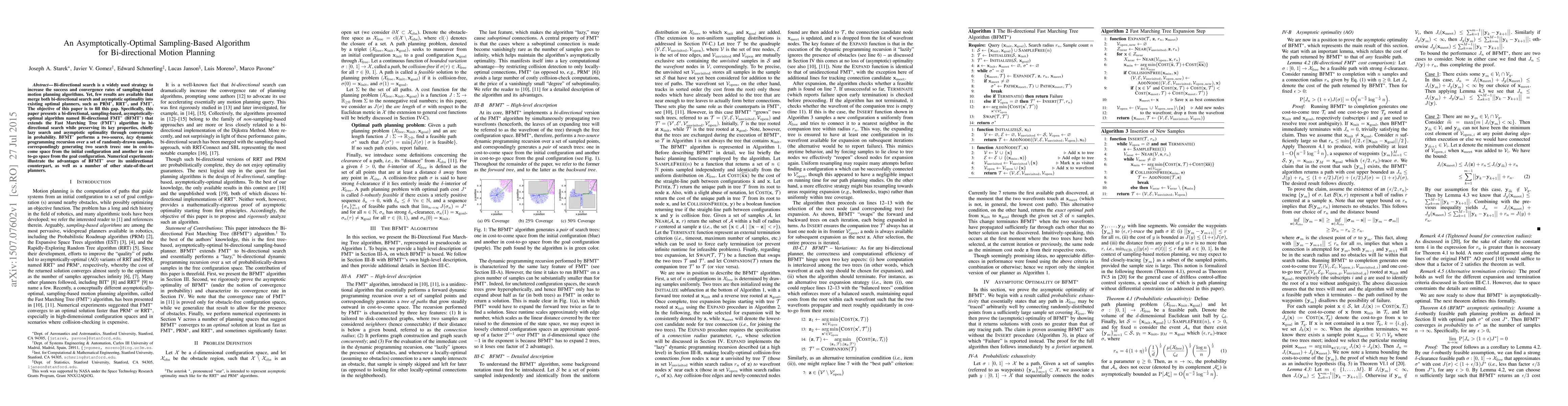 This paper introduces Bi-directional FMT* (BFMT*), a novel bi-directional, sampling-based motion planning algorithm that merges bi-directional search with asymptotic optimality. BFMT* extends the FMT* algorithm, demonstrating improved performance over existing planners through numerical experiments.