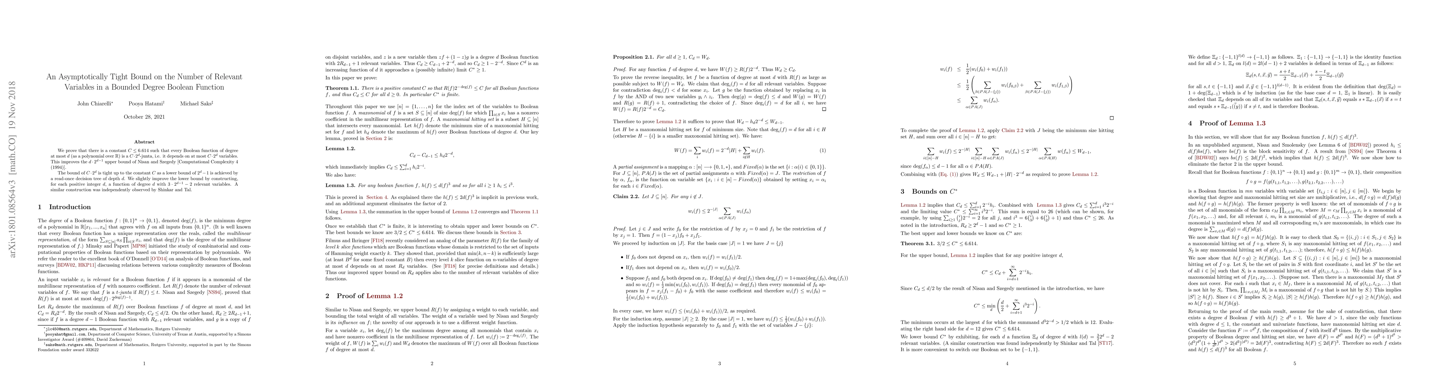 We prove that there is a constant $C\leq 6.614$ such that every Boolean function of degree at most $d$ (as a polynomial over $\mathbb{R}$) is a $C\cdot 2^d$-junta, i.e. it depends on at most $C\cdot 2^d$ variables. This improves the $d\cdot 2^{d-1}$ upper bound of Nisan and Szegedy [Computational Complexity 4 (1994)]. Our proof uses a new weighting scheme where we assign weights to variables based on the highest degree monomial they appear on. The bound of $C\cdot 2^d$ is tight up to the constant $C$ as a lower bound of $2^d-1$ is achieved by a read-once decision tree of depth $d$. We slightly improve the lower bound by constructing, for each positive integer $d$, a function of degree $d$ with $3\cdot 2^{d-1}-2$ relevant variables. A similar construction was independently observed by Shinkar and Tal.