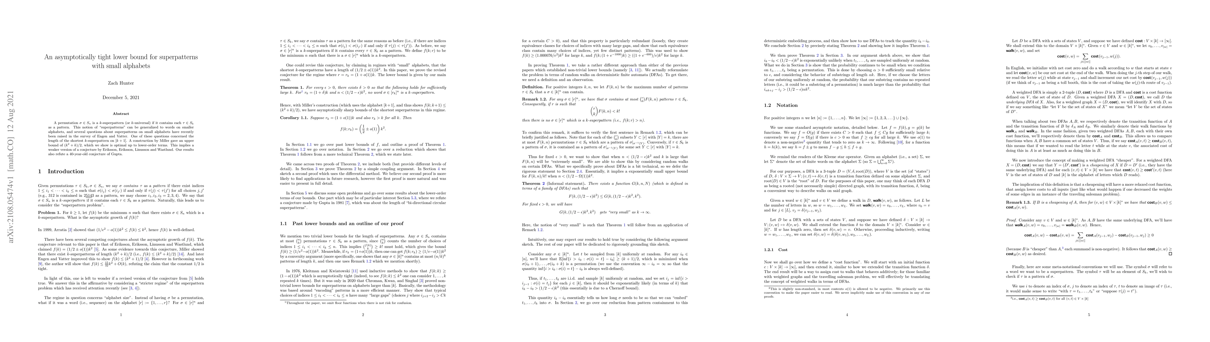 A permutation $\sigma \in S_n$ is a $k$-superpattern (or $k$-universal) if it contains each $\tau \in S_k$ as a pattern. This notion of "superpatterns" can be generalized to words on smaller alphabets, and several questions about superpatterns on small alphabets have recently been raised in the survey of Engen and Vatter. One of these questions concerned the length of the shortest $k$-superpattern on $[k+1]$. A construction by Miller gave an upper bound of $(k^2+k)/2$, which we show is optimal up to lower-order terms. This implies a weaker version of a conjecture by Eriksson, Eriksson, Linusson and Wastlund. Our results also refute a 40-year-old conjecture of Gupta.