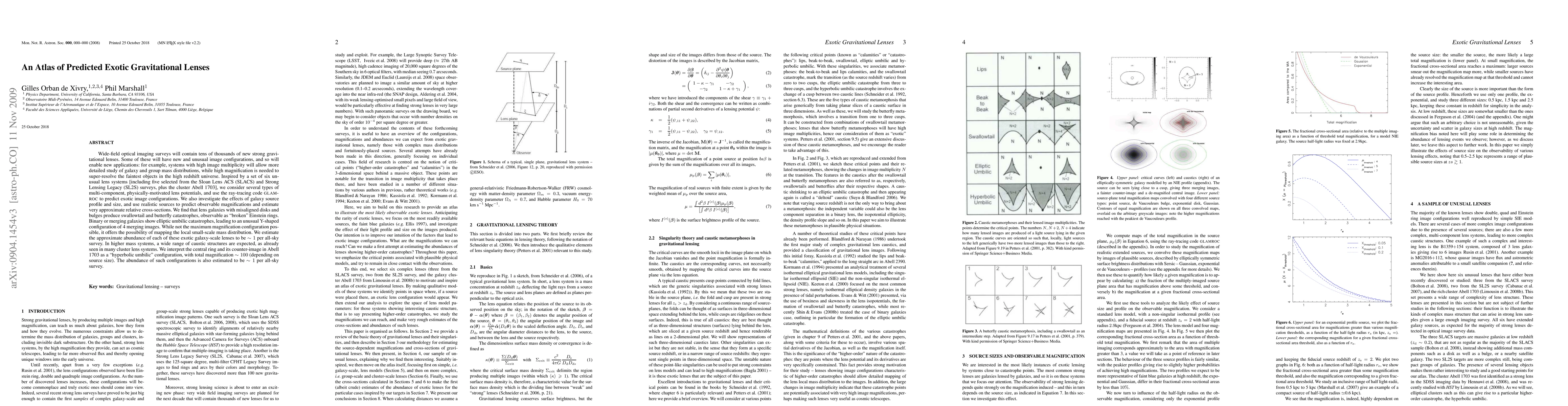 Wide-field optical imaging surveys will contain tens of thousands of new strong gravitational lenses. Some of these will have new and unusual image configurations, and so will enable new applications: for example, systems with high image multiplicity will allow more detailed study of galaxy and group mass distributions, while high magnification is needed to super-resolve the faintest objects in the high redshift universe. Inspired by a set of six unusual lens systems [including five selected from the Sloan Lens ACS (SLACS) and Strong Lensing Legacy (SL2S) surveys, plus the cluster Abell 1703], we consider several types of multi-component, physically-motivated lens potentials, and use the ray-tracing code "glamroc" to predict exotic image configurations. We also investigate the effects of galaxy source profile and size, and use realistic sources to predict observable magnifications and estimate very approximate relative cross-sections. We find that lens galaxies with misaligned disks and bulges produce swallowtail and butterfly catastrophes, observable as "broken" Einstein rings. Binary or merging galaxies show elliptic umbilic catastrophes, leading to an unusual Y-shaped configuration of 4 merging images. While not the maximum magnification configuration possible, it offers the possibility of mapping the local small-scale mass distribution. We estimate the approximate abundance of each of these exotic galaxy-scale lenses to be ~1 per all-sky survey. In higher mass systems, a wide range of caustic structures are expected, as already seen in many cluster lens systems. We interpret the central ring and its counter-image in Abell 1703 as a "hyperbolic umbilic" configuration, with total magnification ~100 (depending on source size). The abundance of such configurations is also estimated to be ~1 per all-sky survey.
