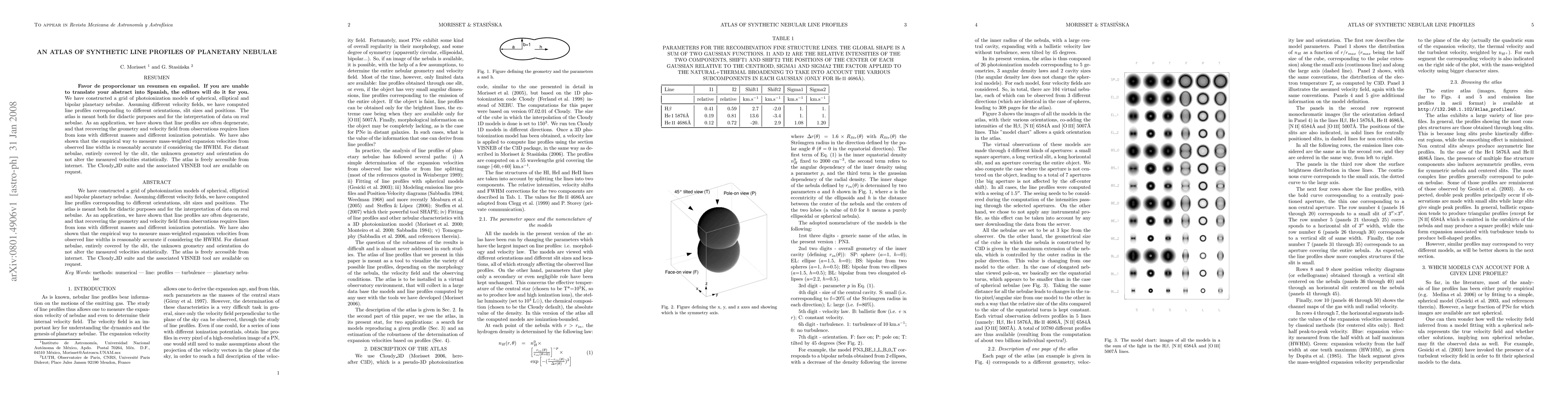 Researchers created an atlas of synthetic line profiles for planetary nebulae to aid in understanding their geometry and velocity fields, highlighting the importance of using lines from different ions and ionization potentials.