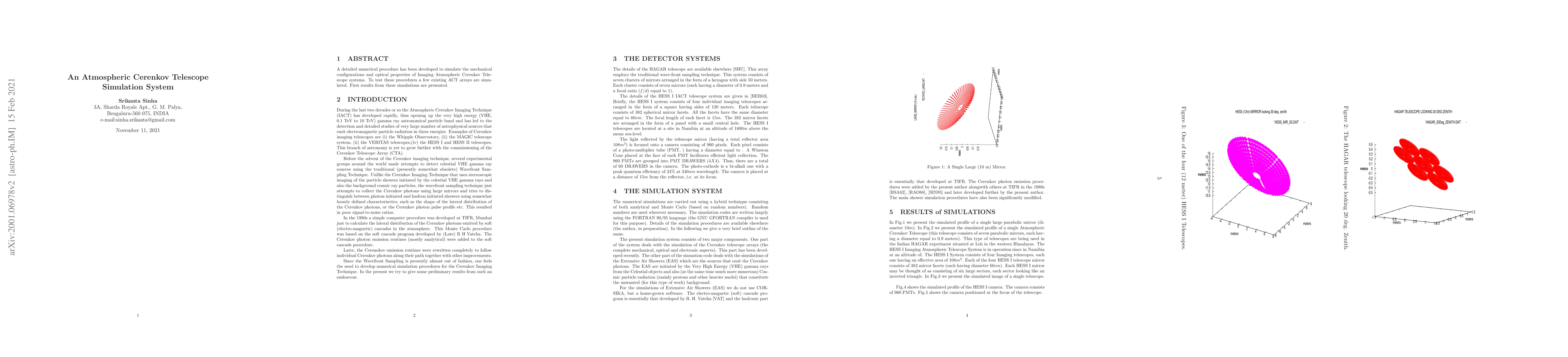 This paper presents a numerical simulation system for Imaging Atmospheric Cerenkov Telescopes (ACT), detailing its mechanical and optical configurations. Initial results from simulations of existing ACT arrays demonstrate the system's effectiveness.
