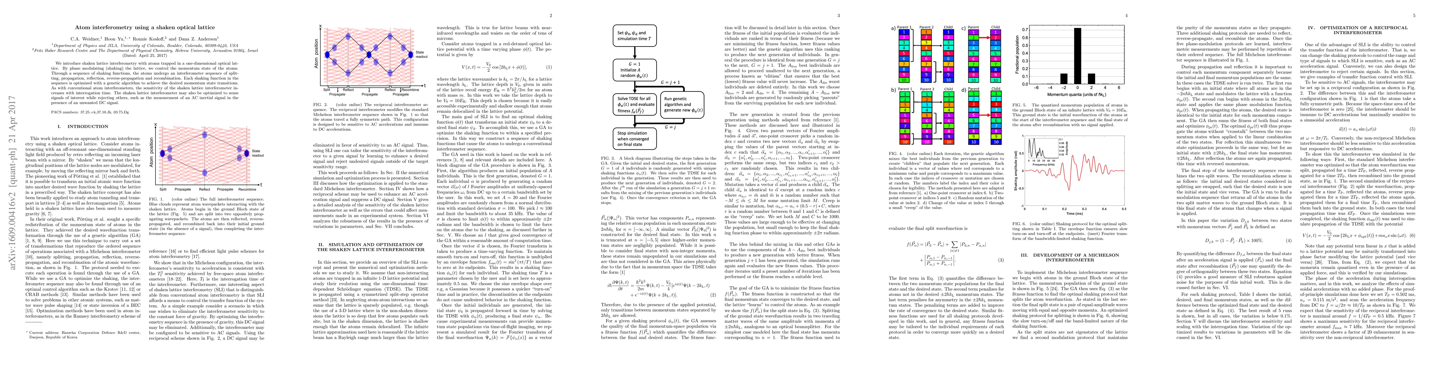This paper presents a novel atom interferometer using a shaken optical lattice to control atom momentum states through optimized shaking functions, enhancing sensitivity and enabling selective signal measurement. The genetic algorithm optimizes each shaking function for desired transitions and improved performance over conventional interferometers.