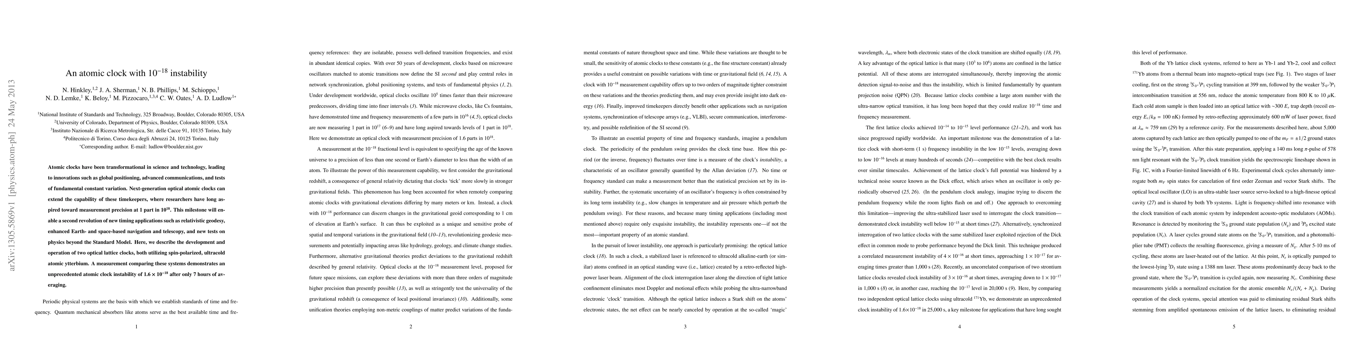 This paper details the development of optical lattice clocks using ultracold ytterbium atoms, achieving an unprecedented atomic clock instability of $1.6 \times 10^{-18}$ after 7 hours, which could revolutionize timing applications and tests of fundamental physics.