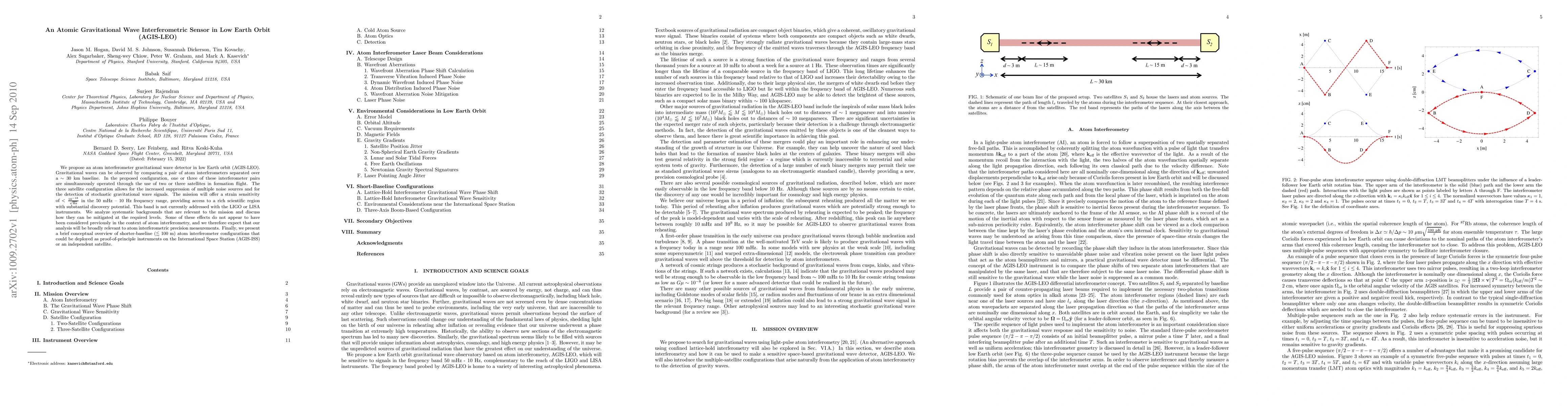 The paper proposes an atom interferometer gravitational wave detector (AGIS-LEO) in low Earth orbit, utilizing multiple satellites to achieve high sensitivity and noise suppression. The mission aims to detect gravitational waves in the 50 mHz - 10 Hz frequency range with a strain sensitivity of < 10^(-18) / Hz^(1/2), filling a gap not covered by current instruments like LIGO or LISA.