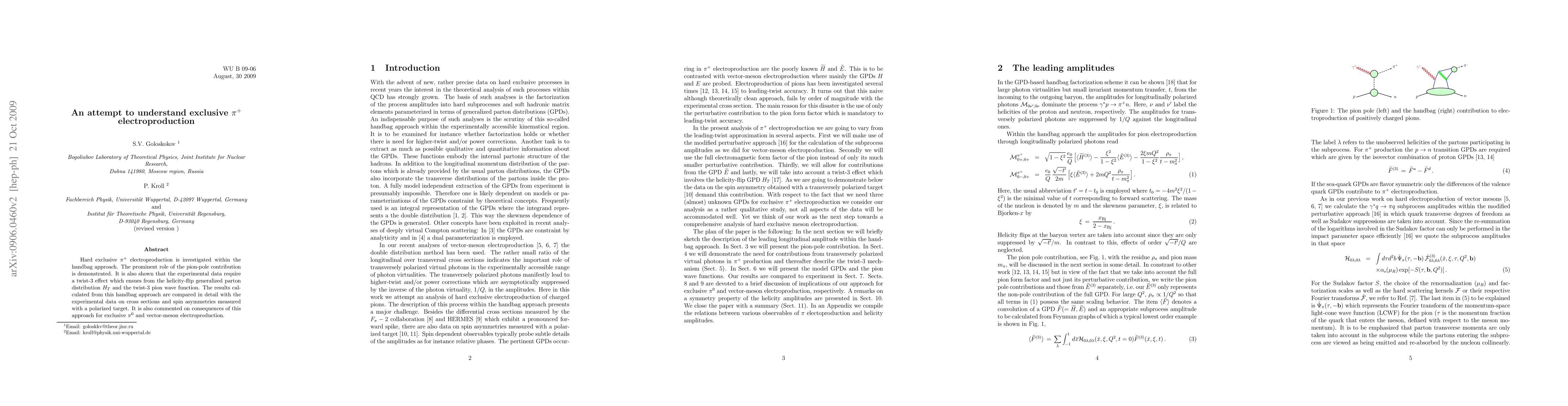 The research investigates exclusive π+ electroproduction within the handbag approach, emphasizing the pion-pole contribution and a twist-3 effect from helicity-flip generalized parton distributions and the twist-3 pion wave function.